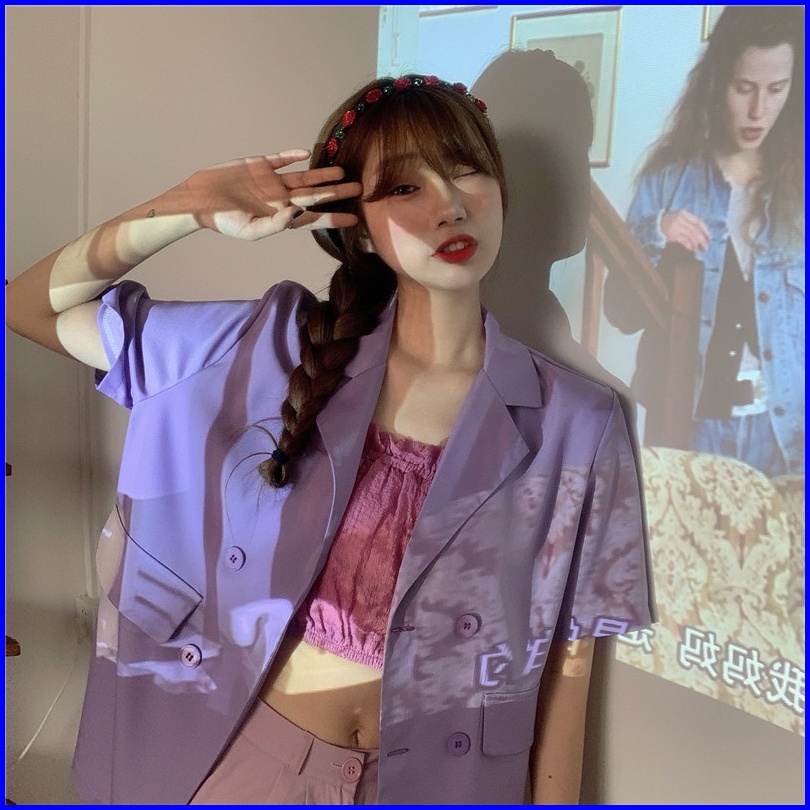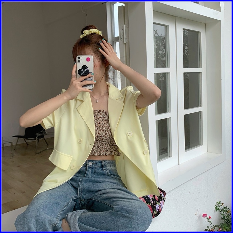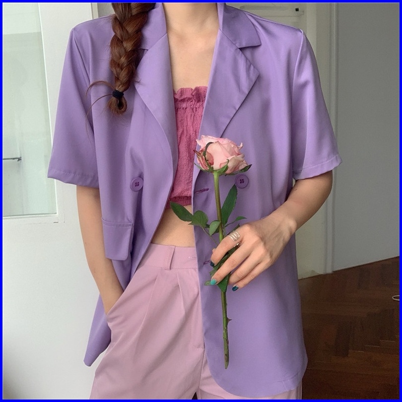 Hijau Biru Kuning Ungu Korea Blazer Wanita Lengan Pendek Setelan Jas Blazer Women Outer 2023t Murah