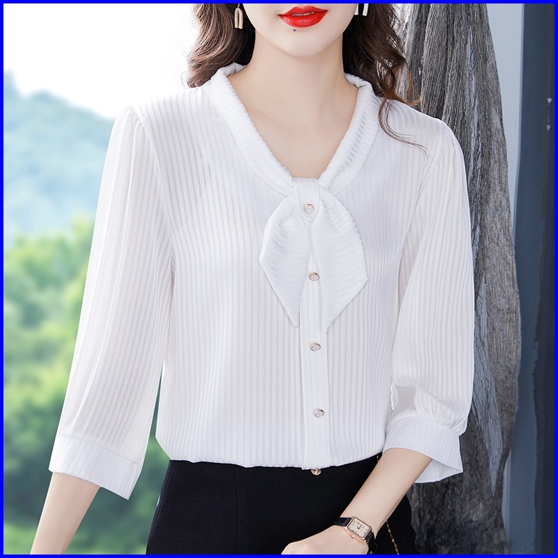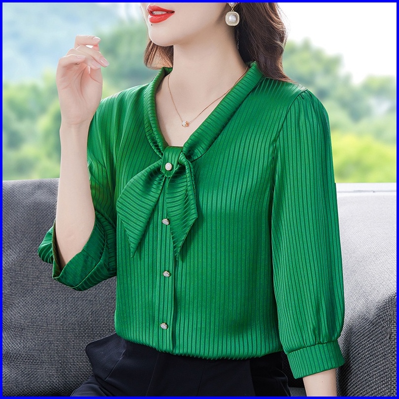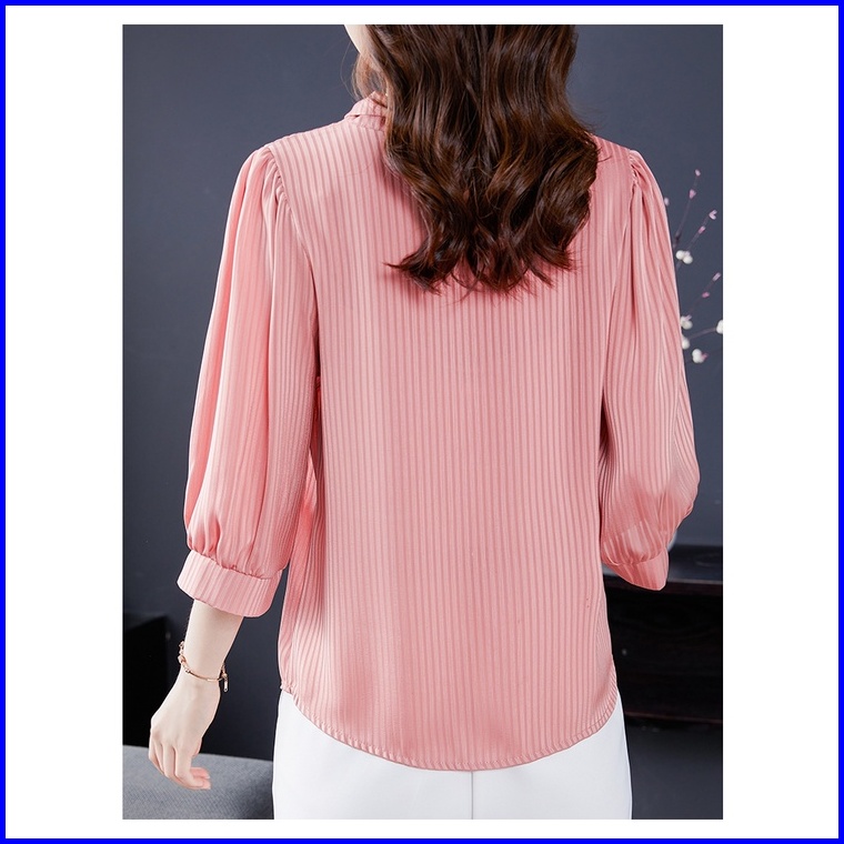 New Fashion Korean Style 3 4 Sleeve Casual Work Blouse For Women Blue Pink Green White Summer Shirts 2023t Baju Kemeja W