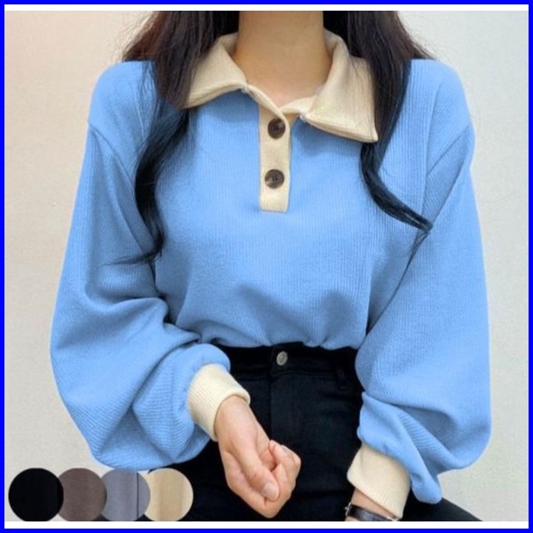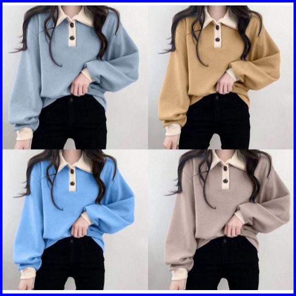 Sweater Wanita Collar Girl Sweater Kancing Polos Kerah Bahan Flecee