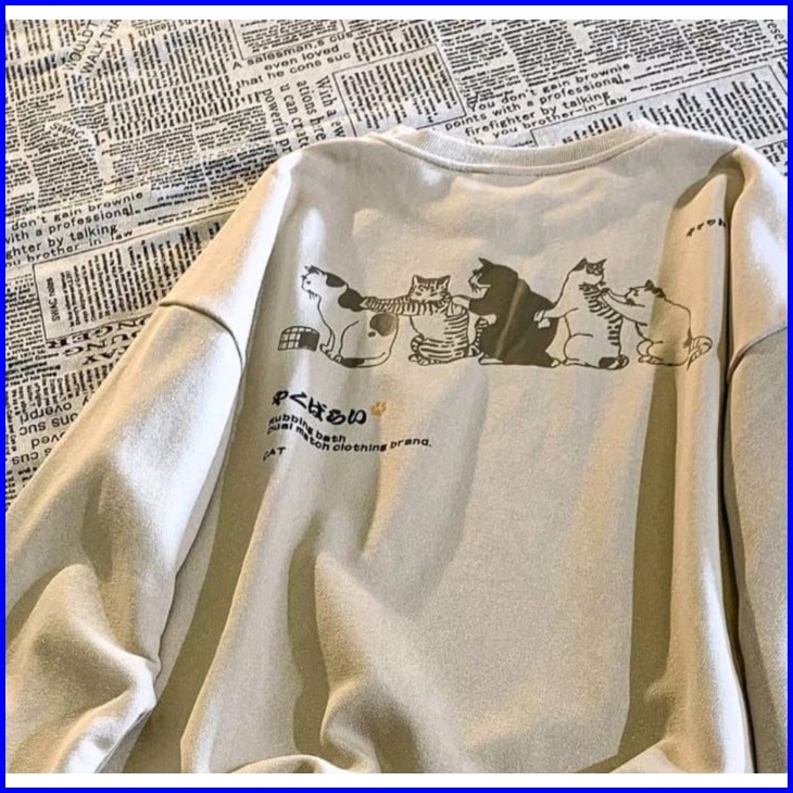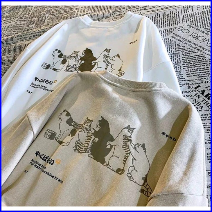 Cat Gank Sweater Oblong Crewneck Bahan Flecee