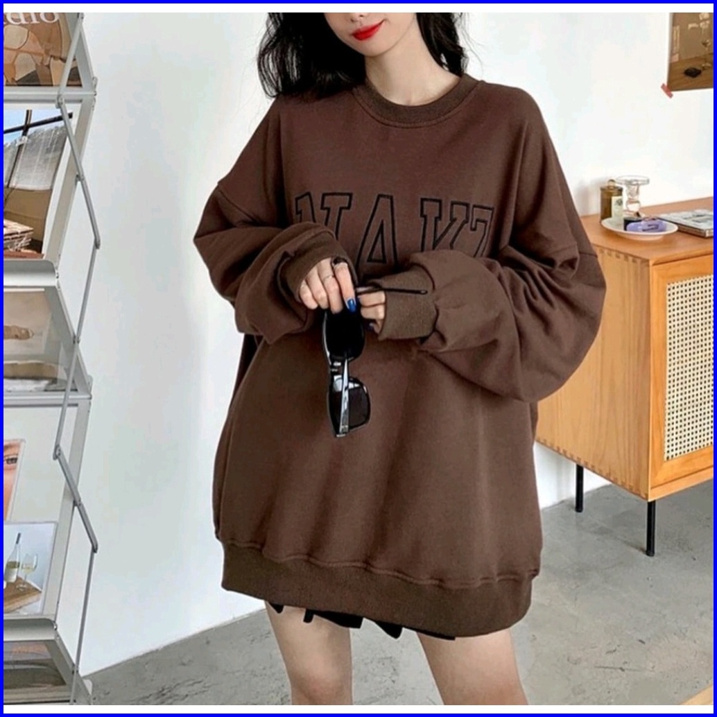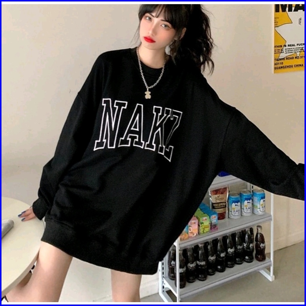 Nakz Oversize Sweater Oblong Crewneck Wanita Fleece