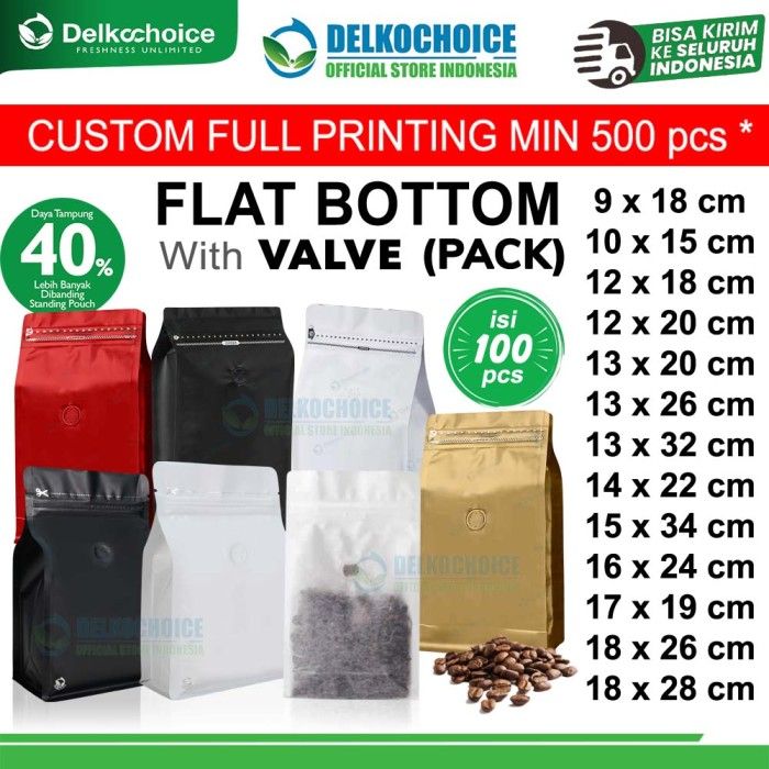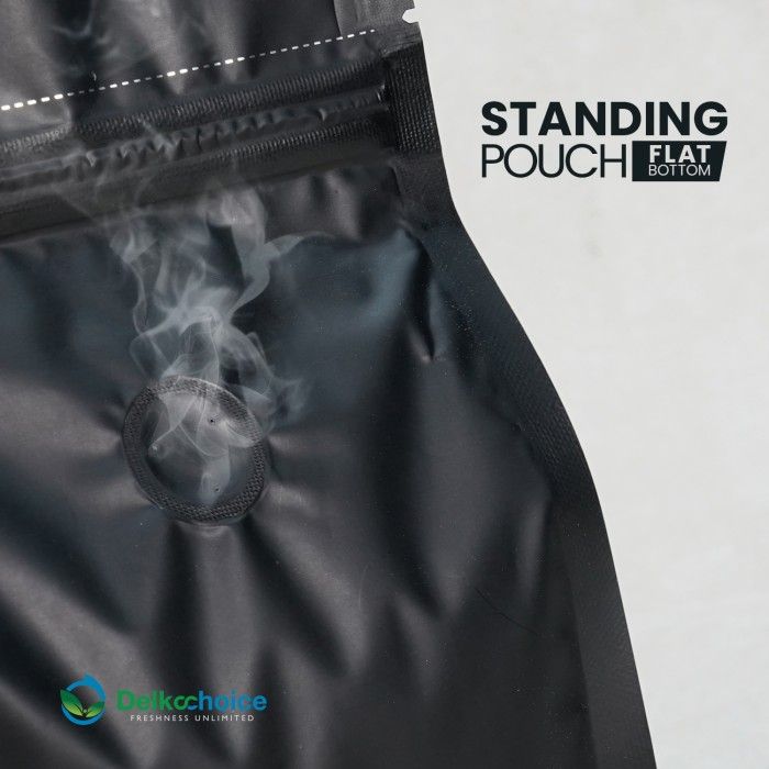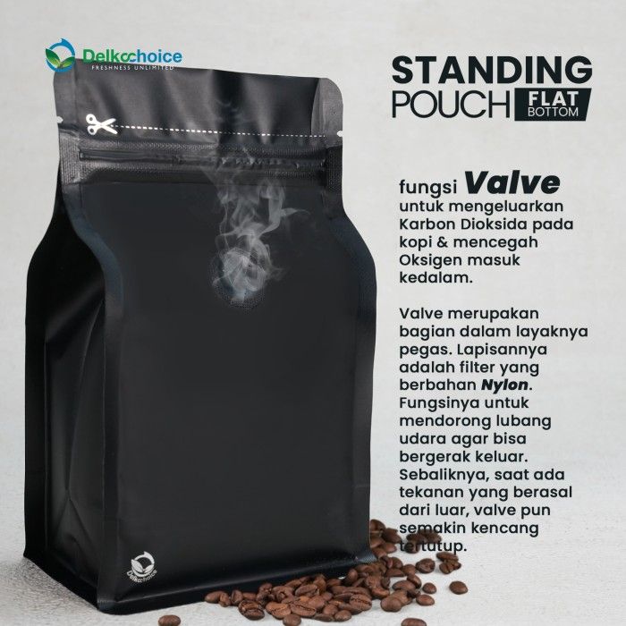 (PACK) Flat Bottom VALVE Coffee Bag Kemasan Biji Kopi Plastik Standing Pouch Ziplock Food Grade DELKOCHOICE