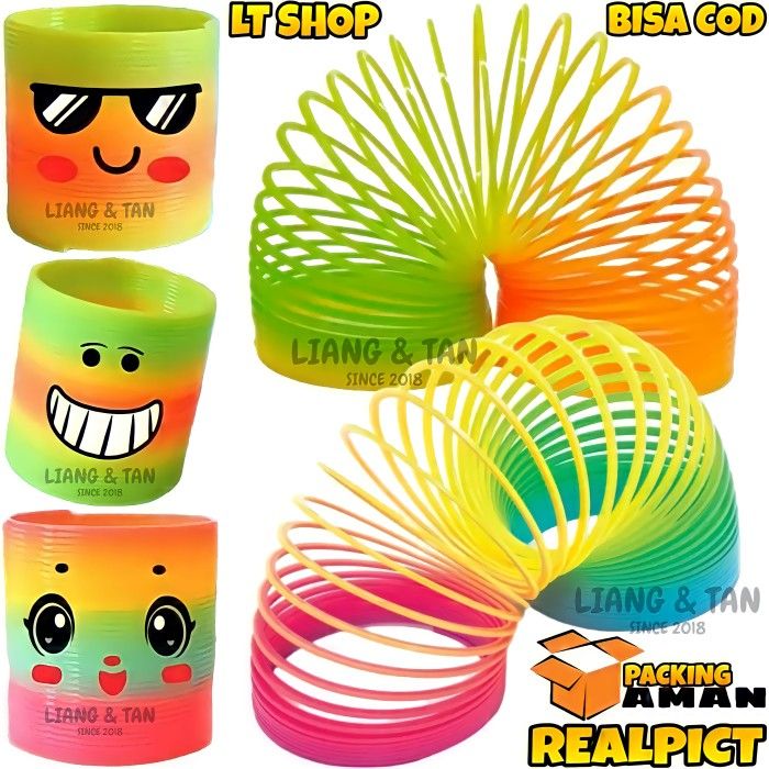 Mainan Anak Magic Spring Slinky Rainbow Pelangi Emoticon LUCU SNI