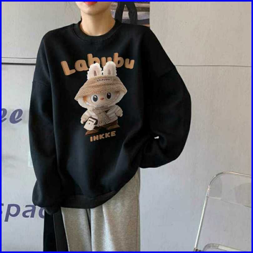 Sweater Oblong Crewneck Oversize Wanita Fleece G24