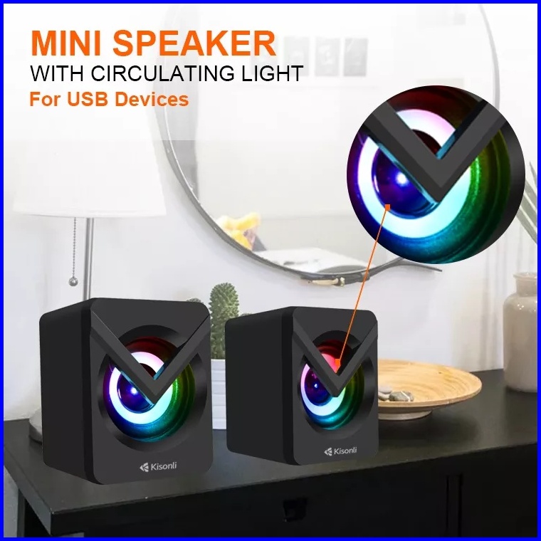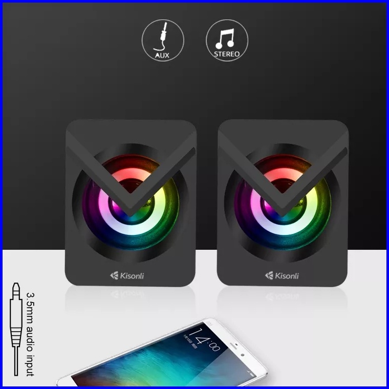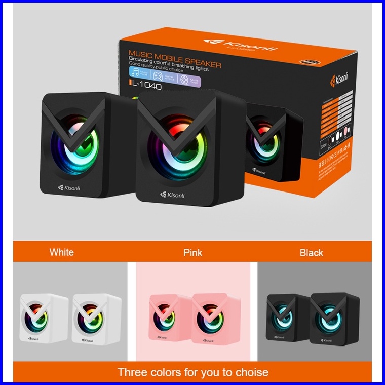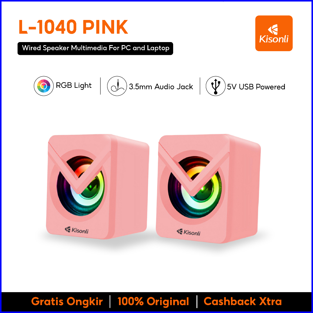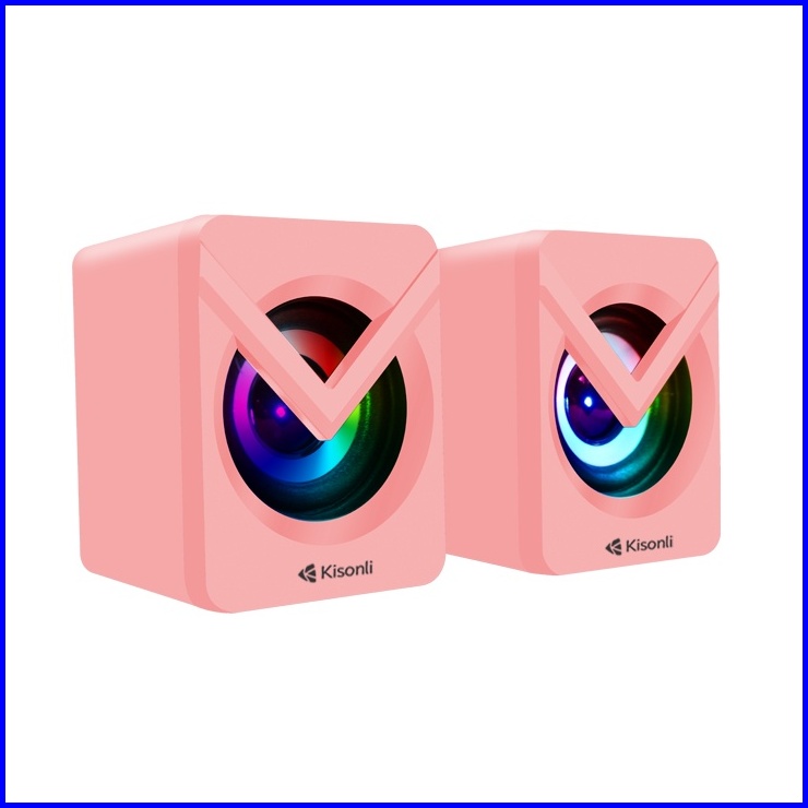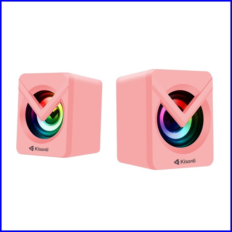 Kisonli Gaming Speaker Komputer Laptop L1040 Led Rgb Light With Switch Volume Control - Pink