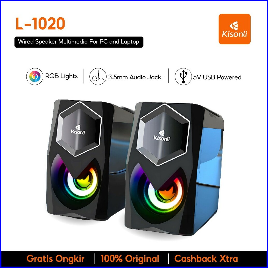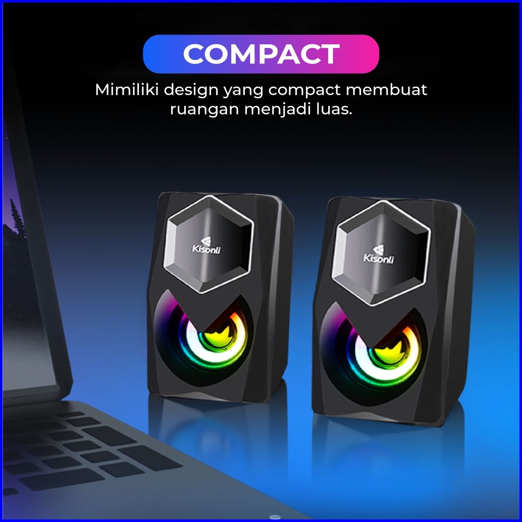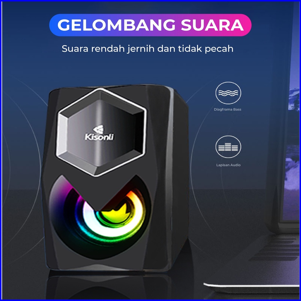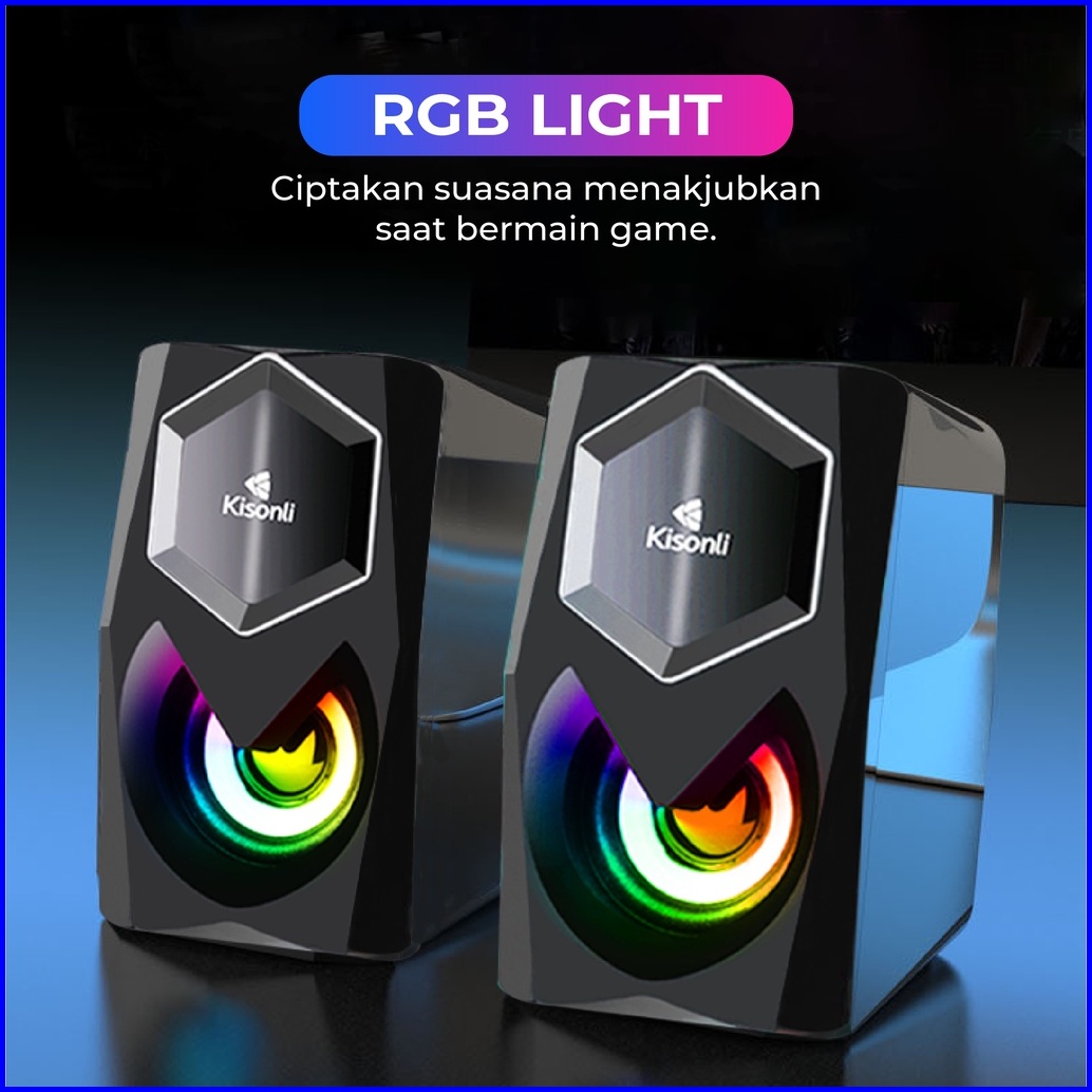 Kisonli Gaming Speaker Laptop Komputer L1020 Led Light Strong Bass With Volume Control