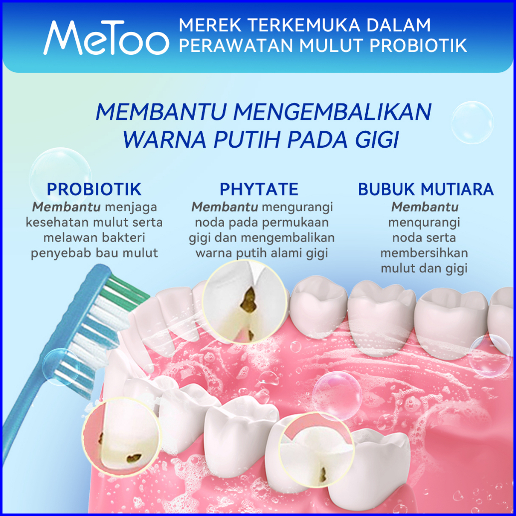 Metoo Teeth Whitening Powder 50g Whitening Tooth Powder Probiotik Mengurangi Noda Pada Gigi Menghilangkan Bau Mulut