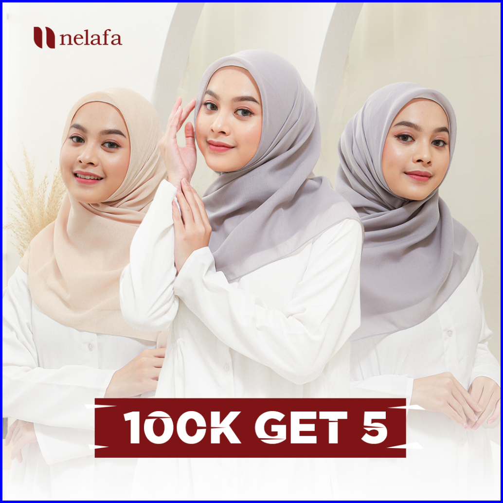 Nelafa Hijab - 100k Get 5 Plain Square Jilbab Premium Daily Wear