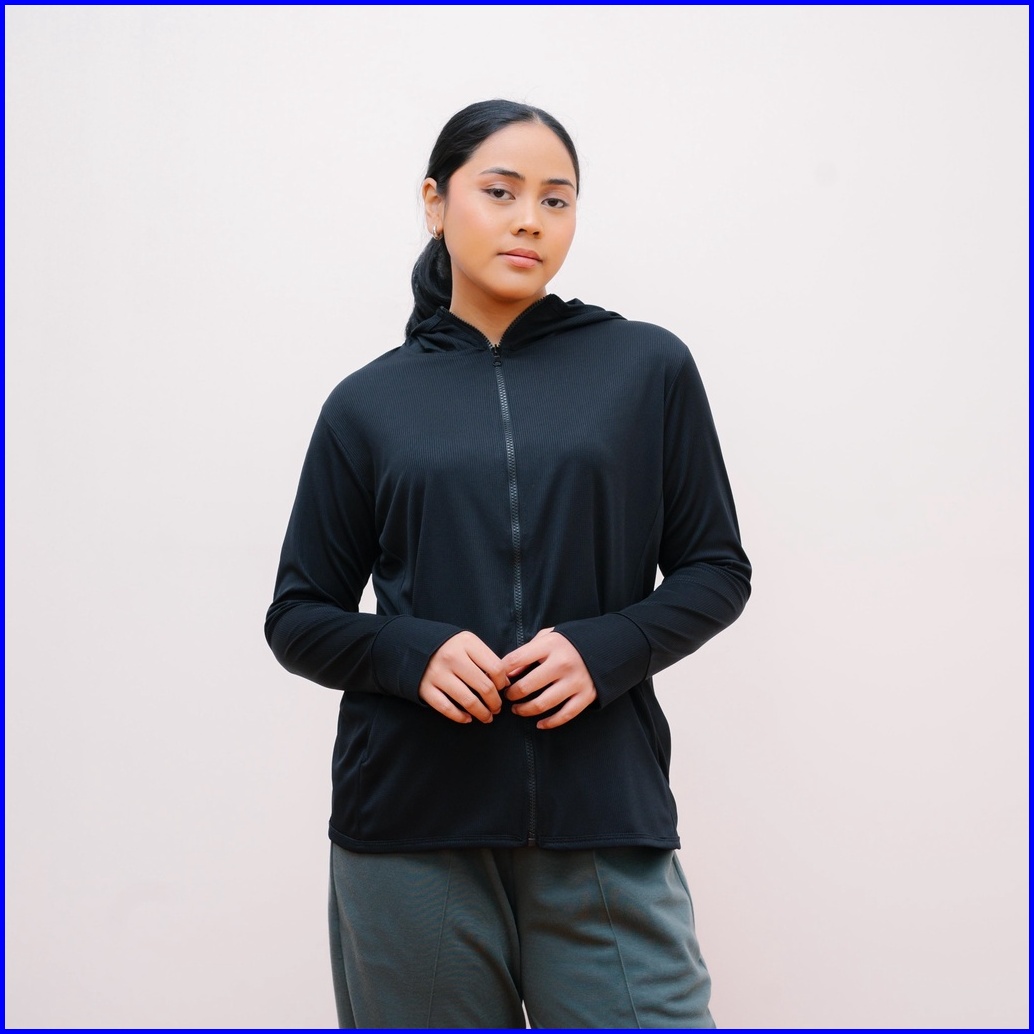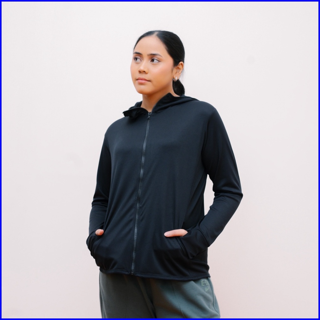 Ie.demode Jaket Olahraga Running Fitness Wanita Outer Sport Breath Technology Polos Hitam