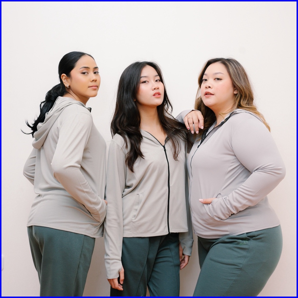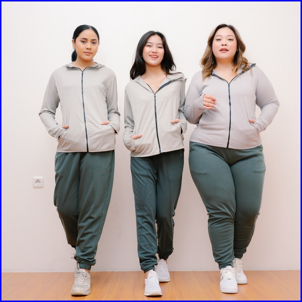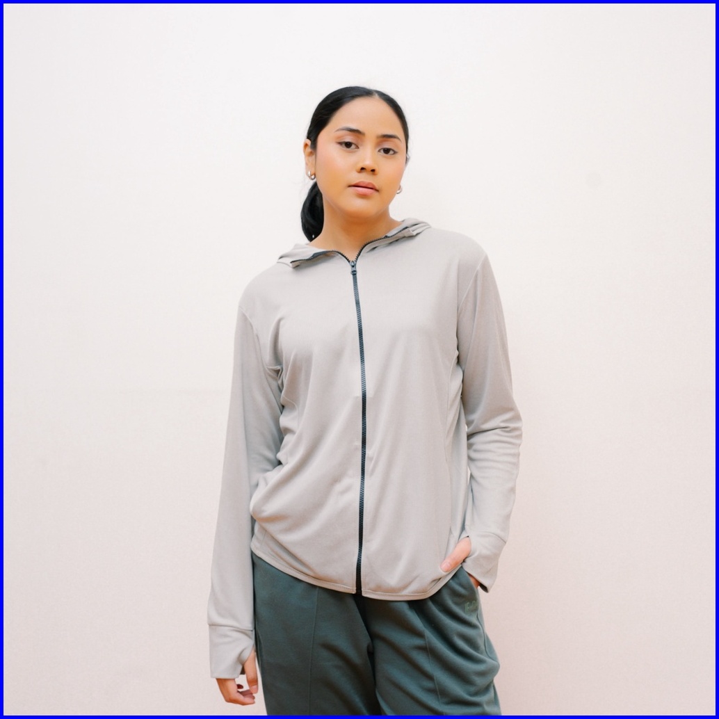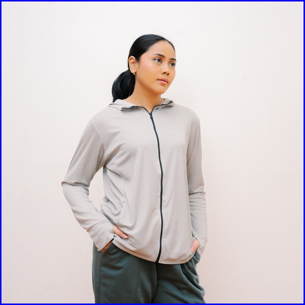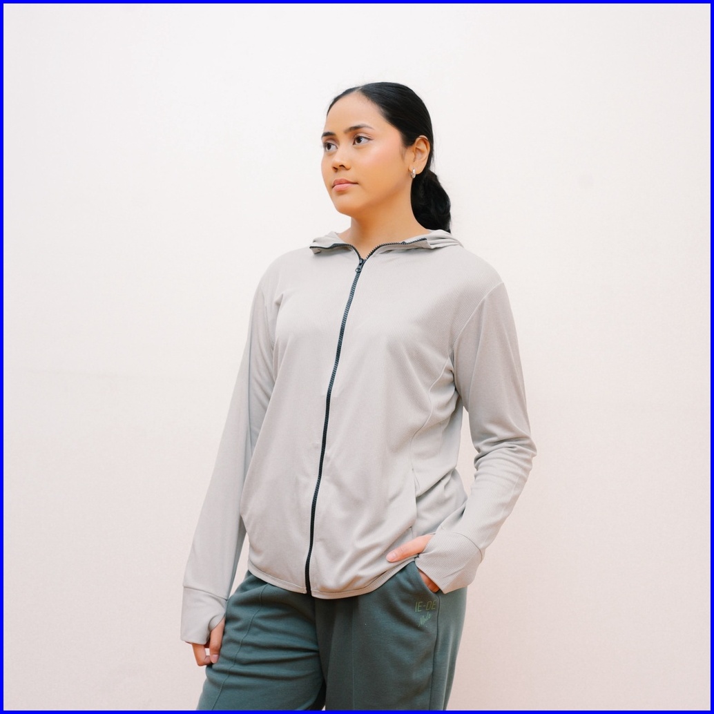 Ie.demode Jaket Olahraga Running Fitness Wanita Outer Sport Breath Technology Polos Abu Muda