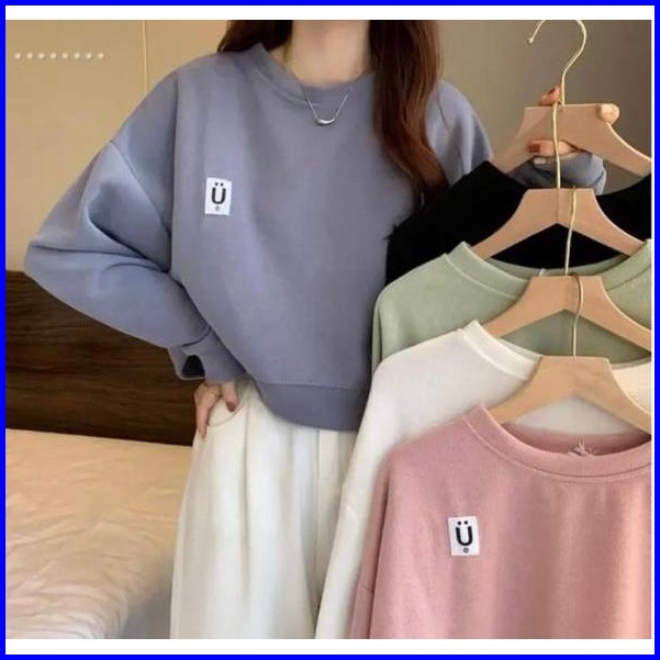 Basic U Croope Sweater Crewneck Wanita Fleece Lembut