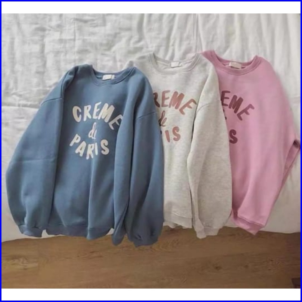 Creme Is Paris Sweater Oblong Crewneck Wanita