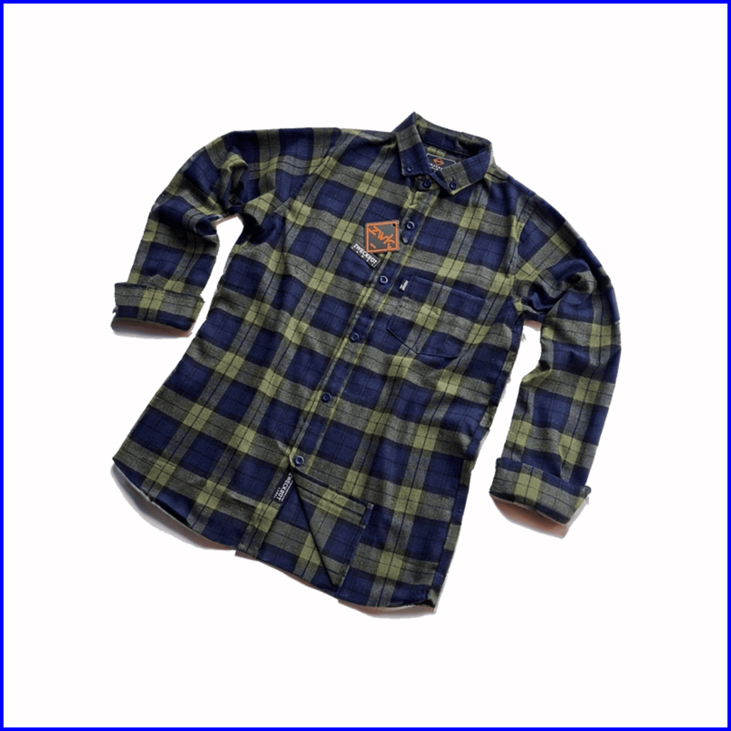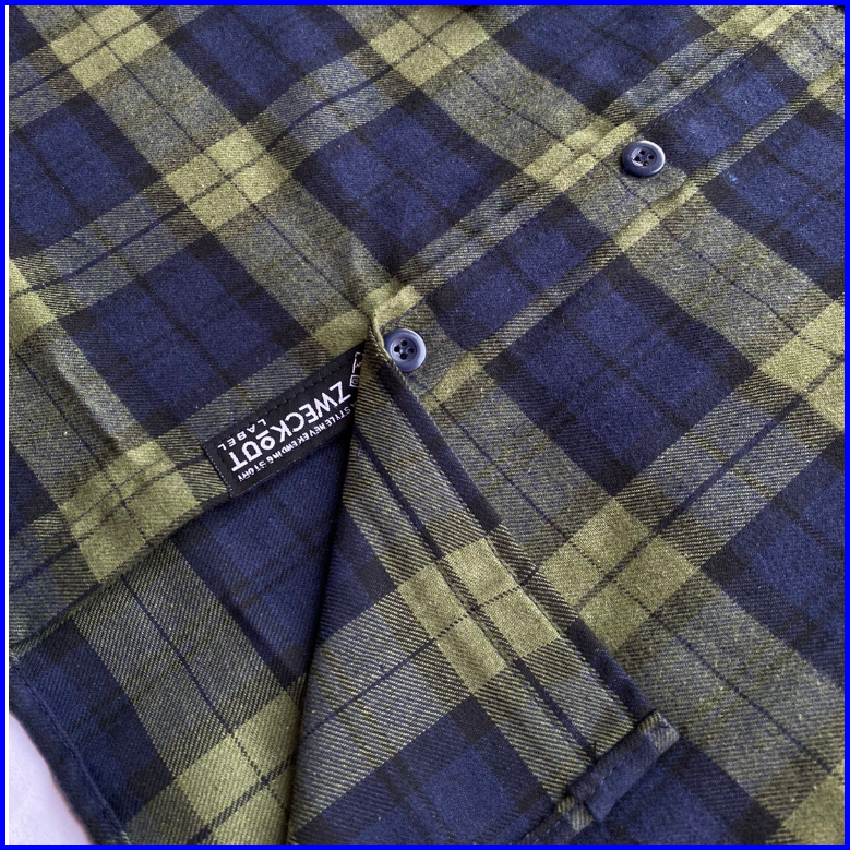 Zweckout Label Kemeja Flanel Pria Lengan Panjang Jumbo Motif Garis Kotak Light Grey Black