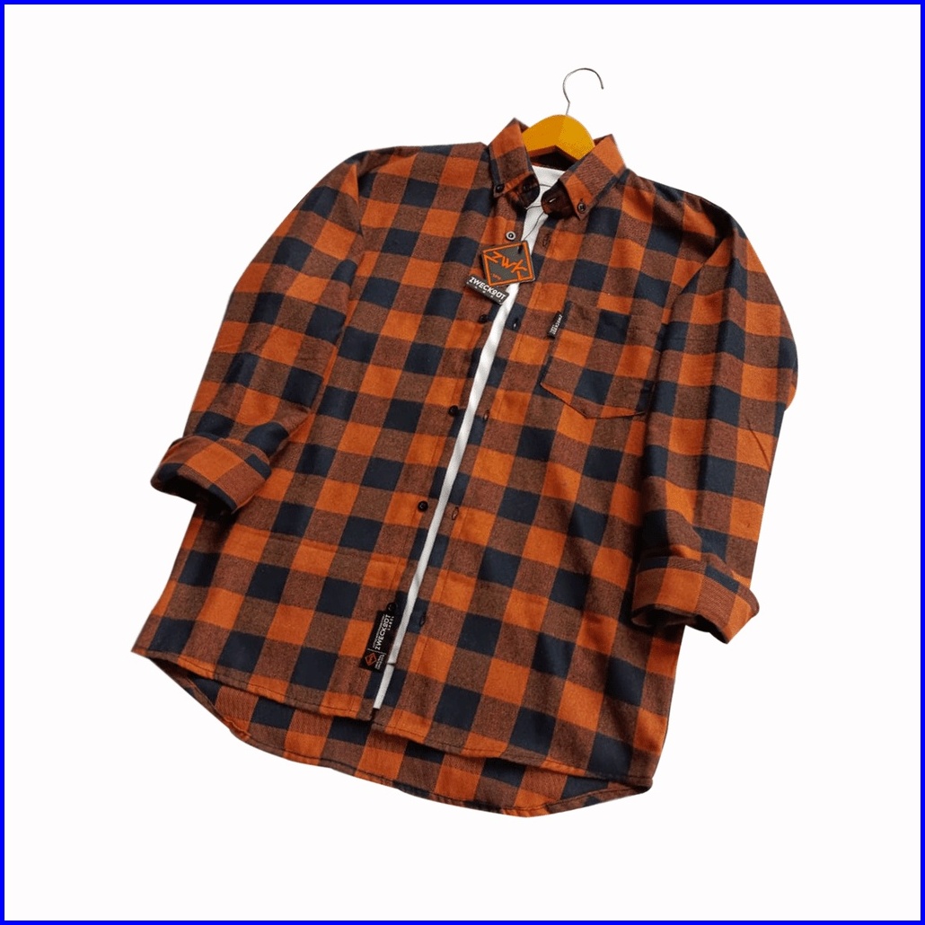 Zweckout Label - Kemeja Flanel Pria Jumbo Lengan Panjang Motif Kotak Garis Orange Black