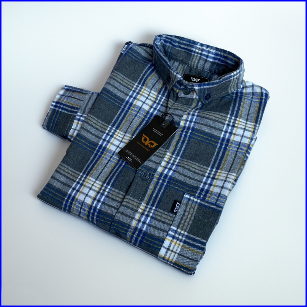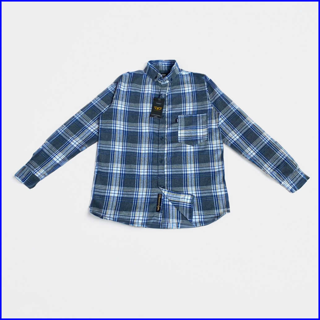 Cloverfield - Kemeja Flanel Pria Wanita Lengan Panjang Jumbo Motif Kotak Garis Grey