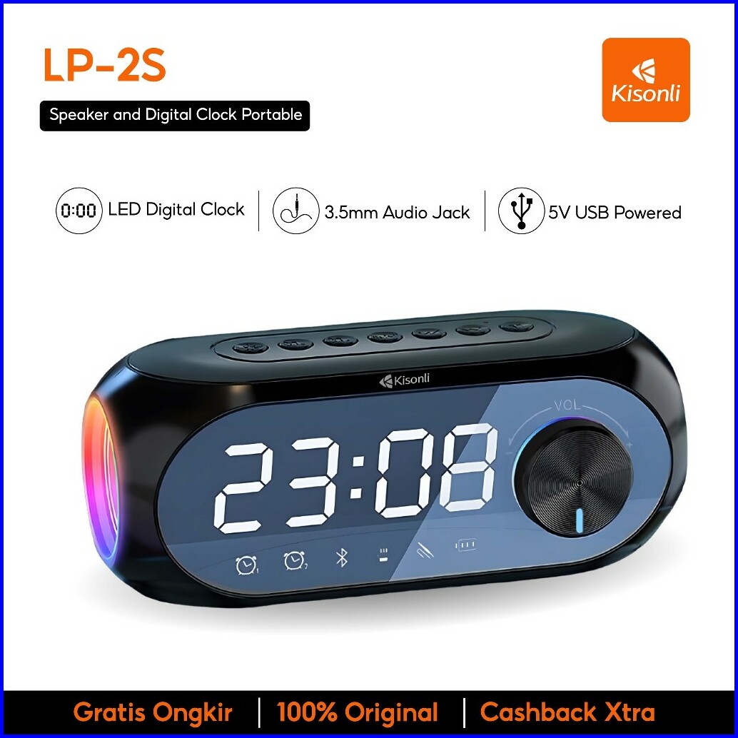 Kisonli Speaker Jam Bluetooth Portable Stereo Original Led Display Alarm Lp2s