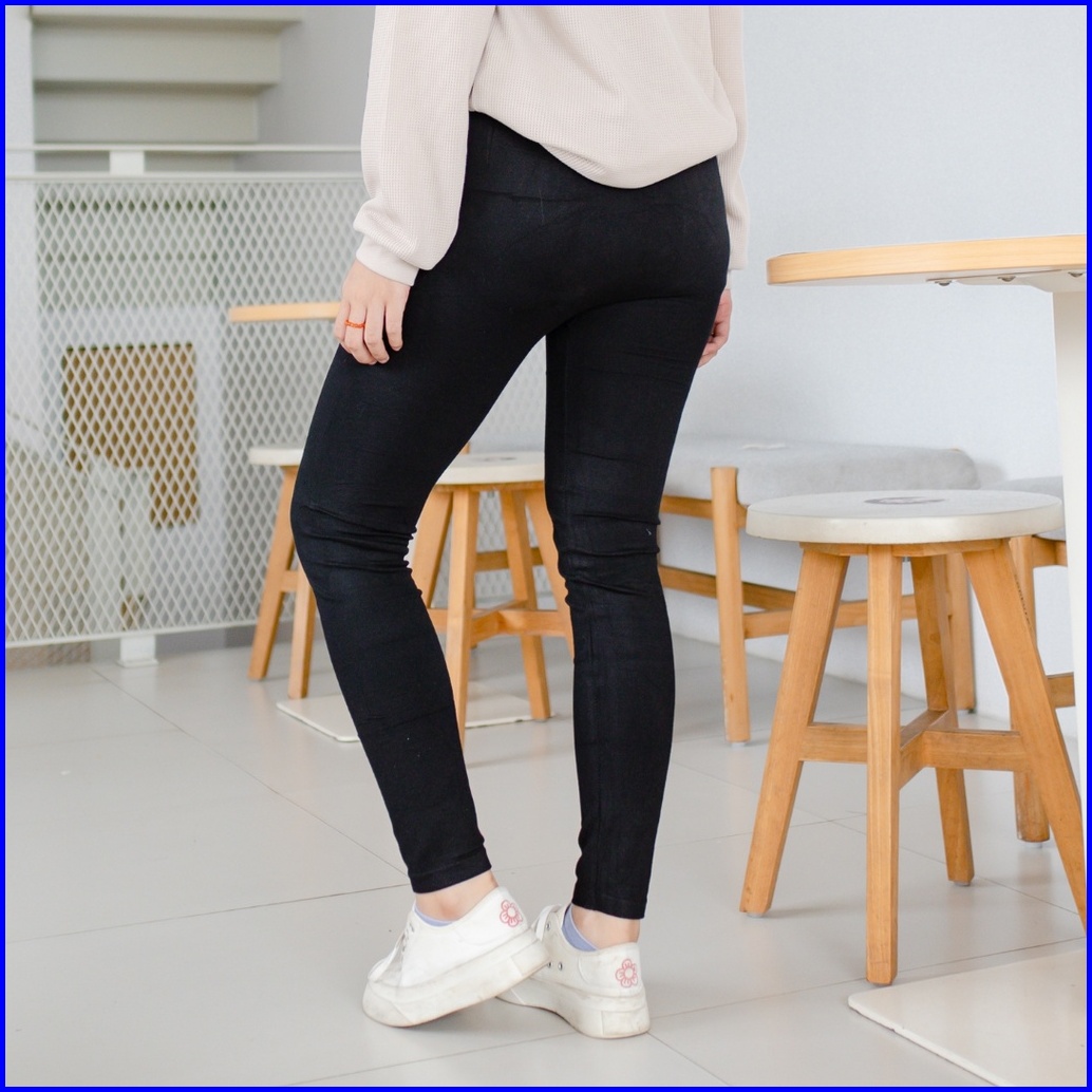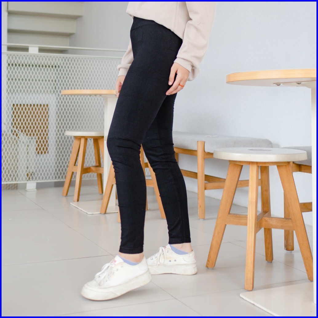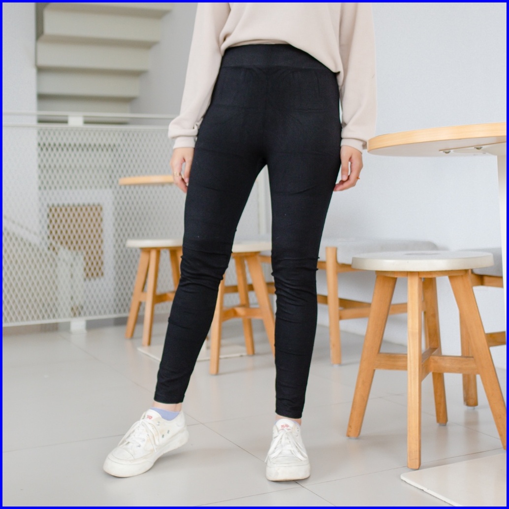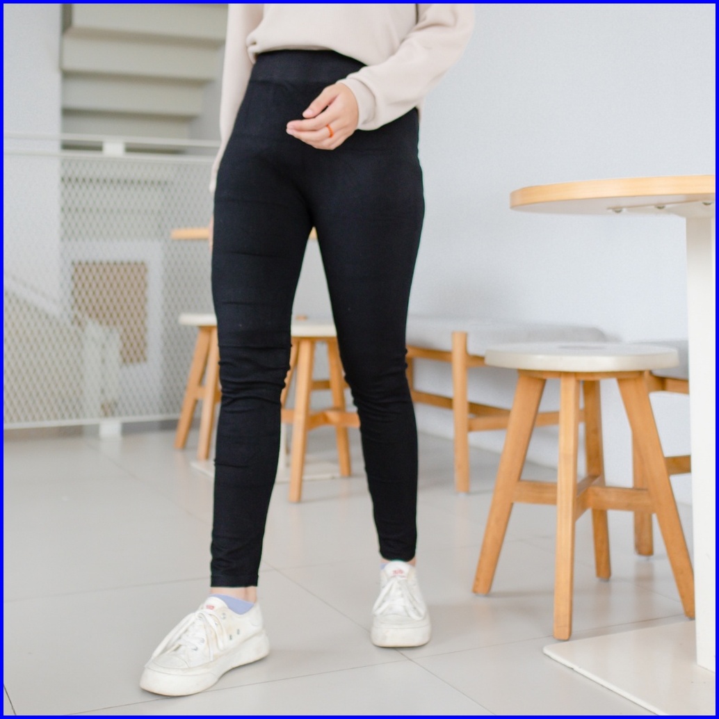 Ie.demode Legging Kaos Highwaist Soft Elastis Basic Polos Tebal Legging Inner Dalaman Hitam