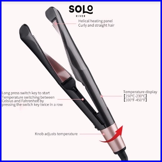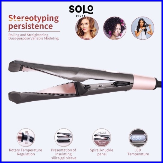 Solo River Catokan Rambut Lurus Dan Keriting 2 In1 50 Watt Dengan Lcd Temperature Catok Profesional Dan Flawless Bergara