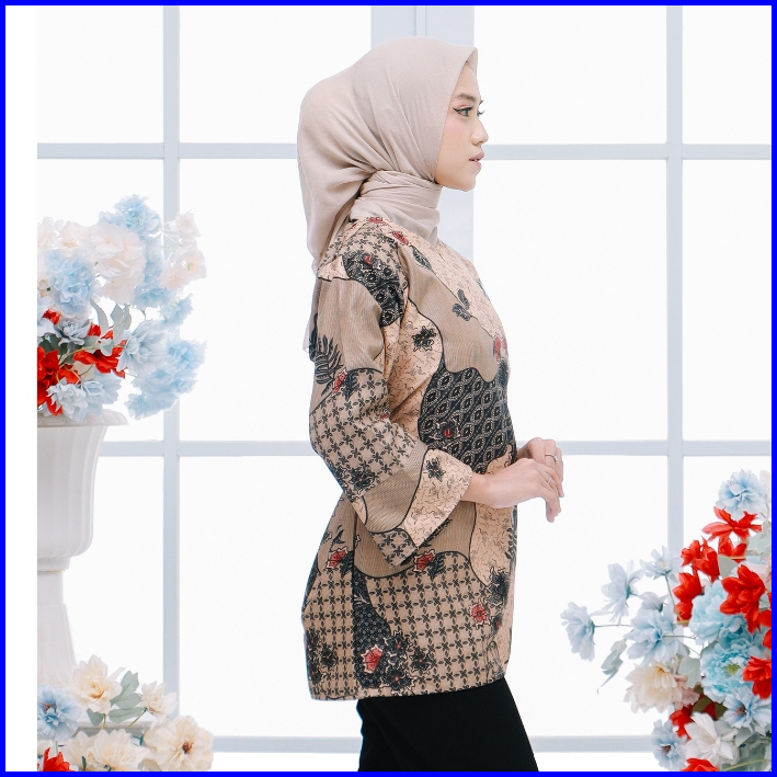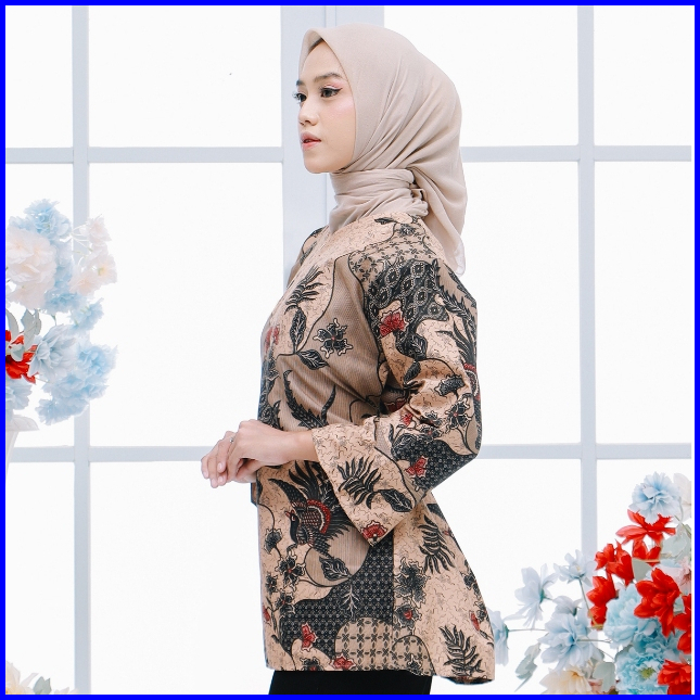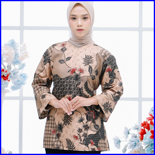 Batik Trusmi Atasan Wanita Blouse Batik Kerja Rale Coklat Mr