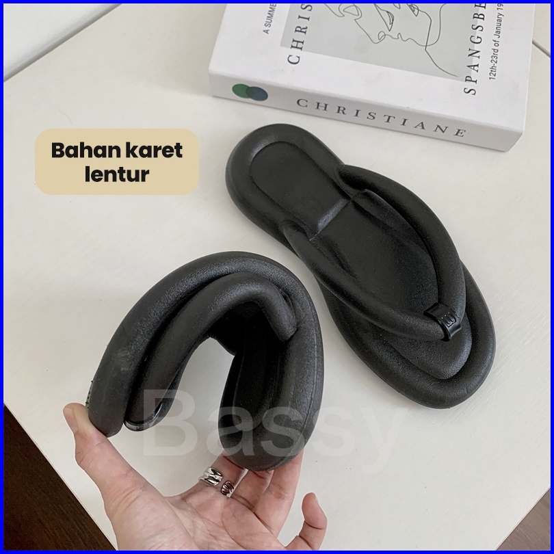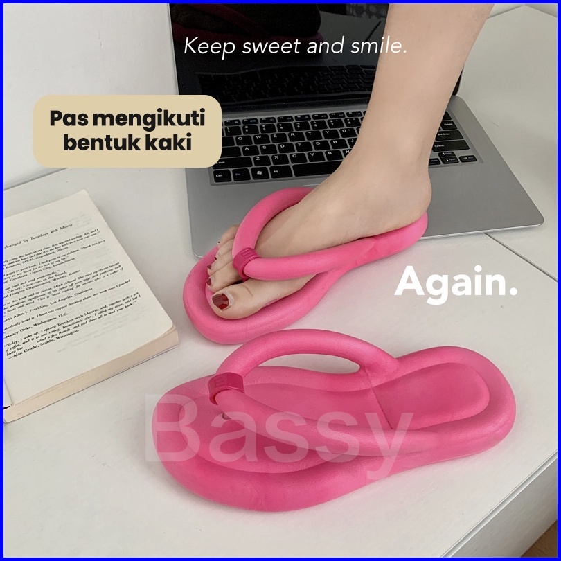 Bassy Sandal Jepit Wanita Sendal Karet Jelly Kekinian Sandal Korea Slop Flat Rumah Anti Slip Hsn133