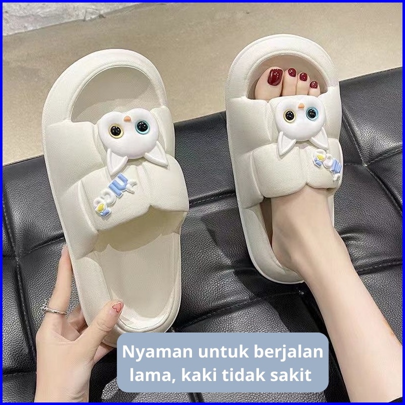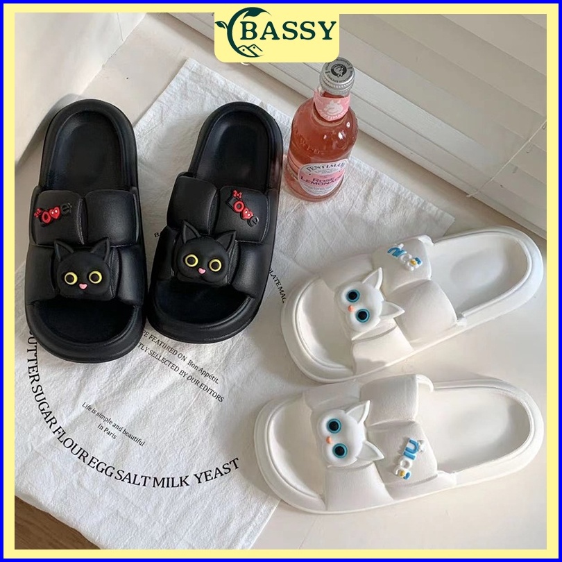 Bassy Sendal Wanita Karet Elastis Empuk Sandal Rumah Kamar Mandi Anti Slip Sandal Korea Jelly Slip On Pita Kucing Sandal