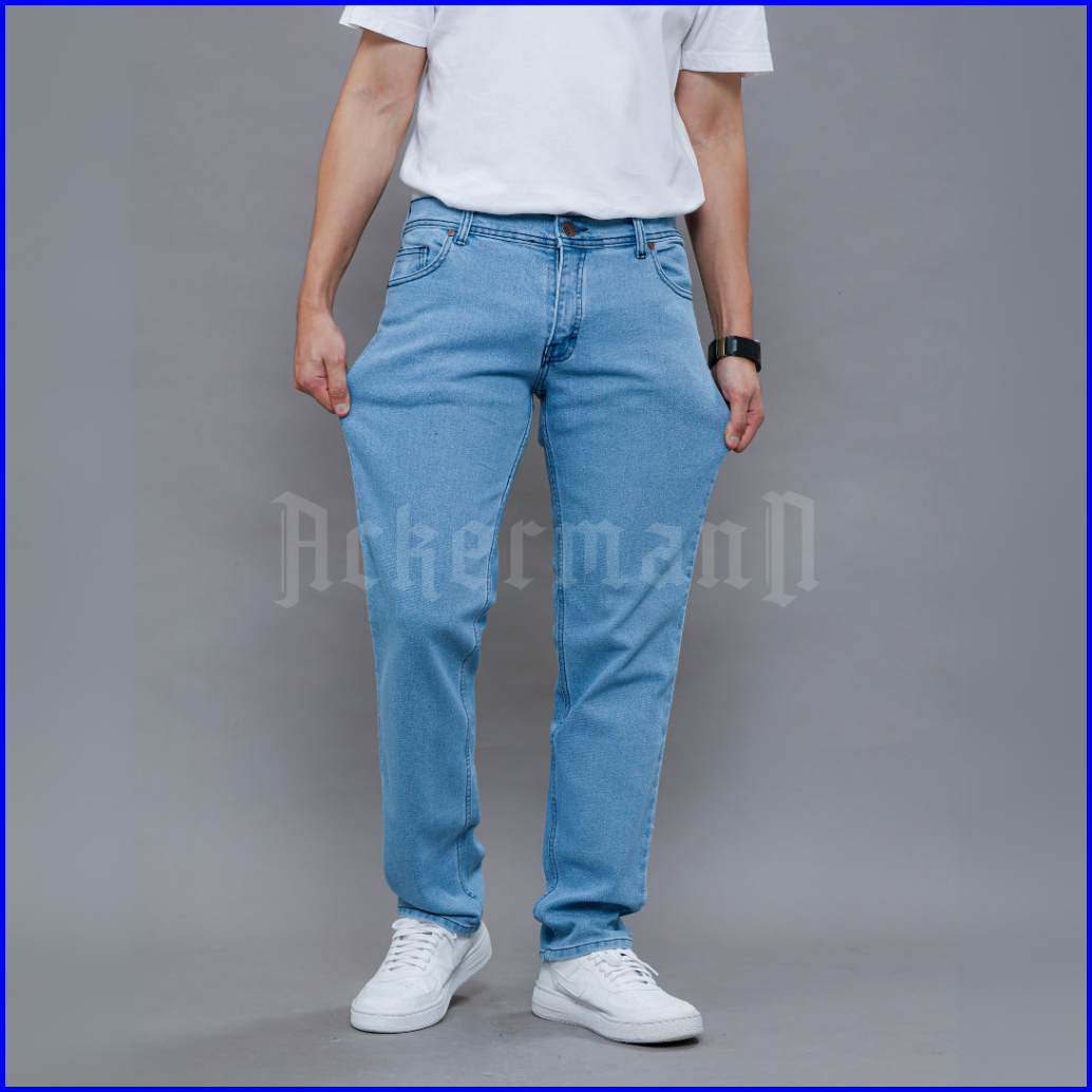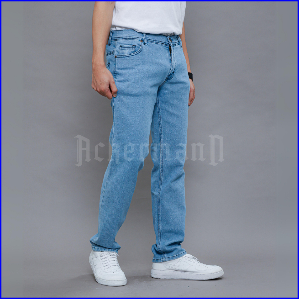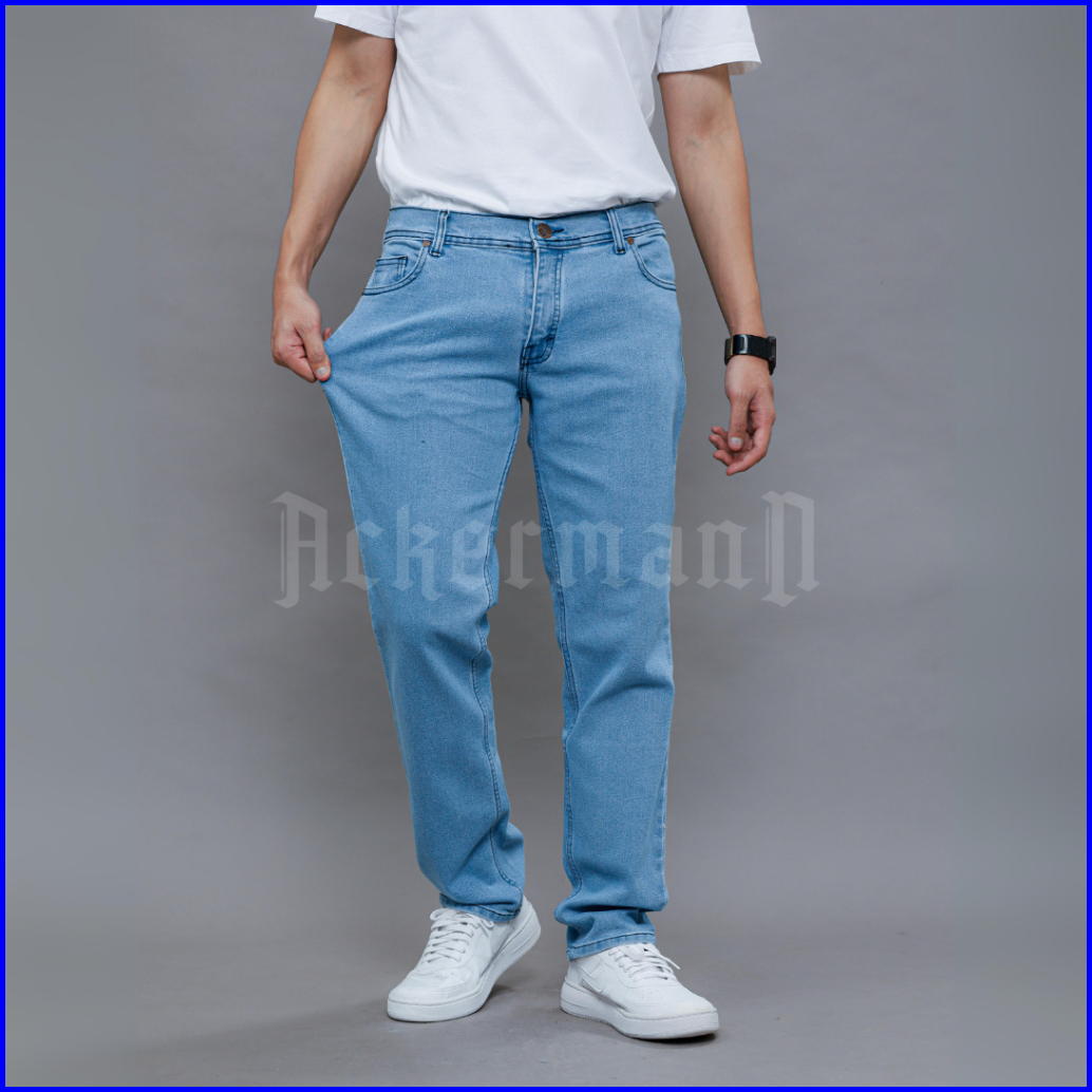 Ackermann By Mallvose - Celana Jeans Denim Pria Panjang Polos Slimfit Sky Blue Premium
