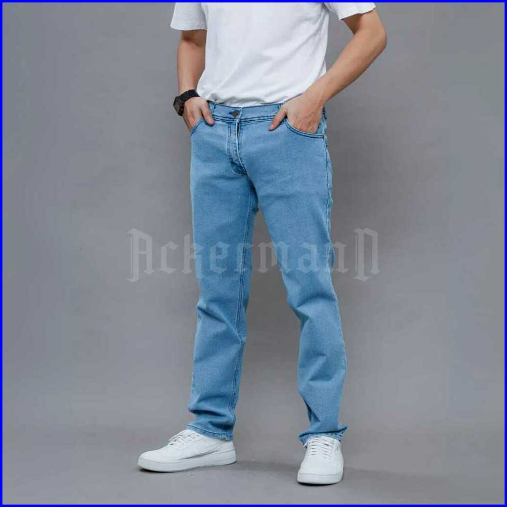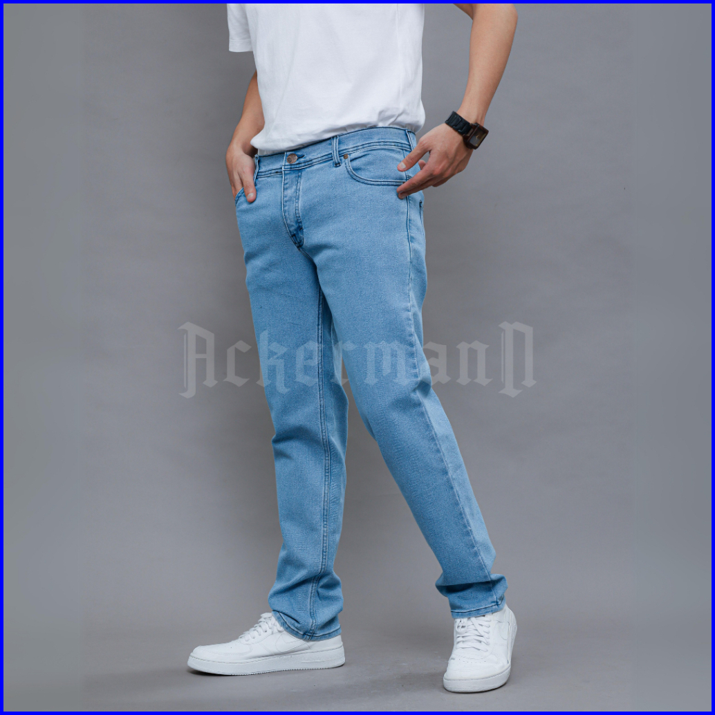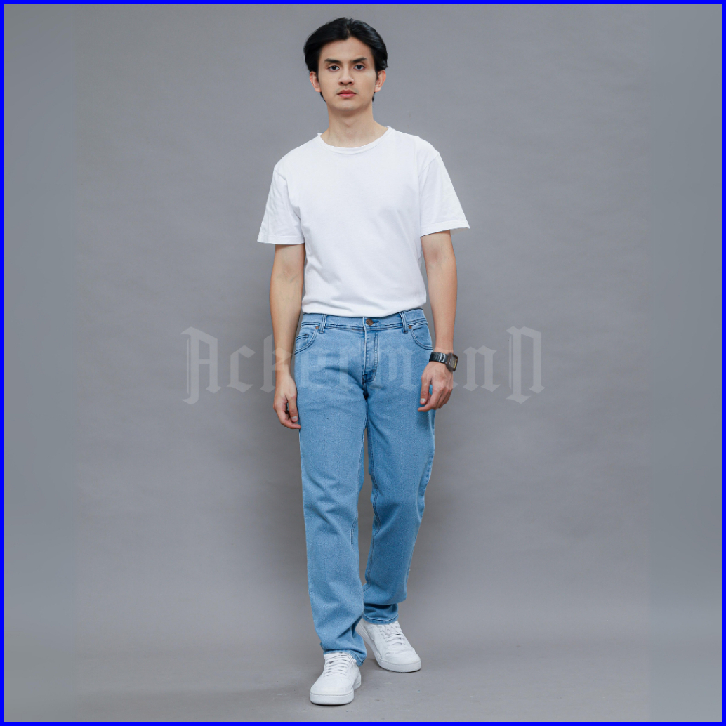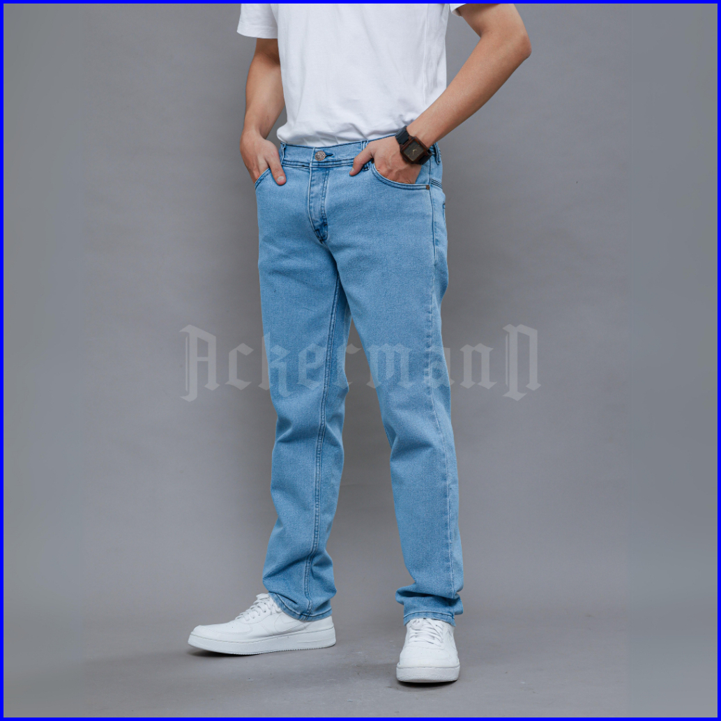Ackermann By Mallvose - Celana Jeans Denim Pria Panjang Polos Slimfit Sky Blue Premium
