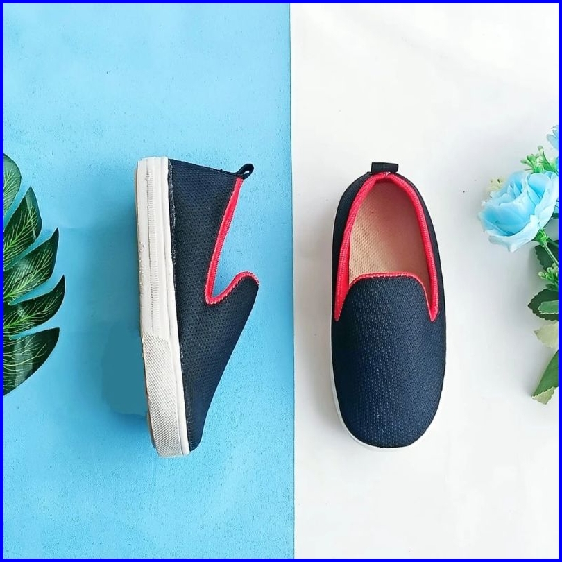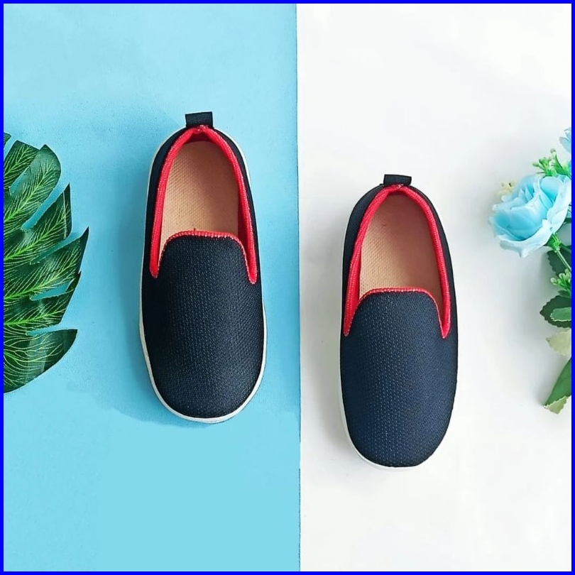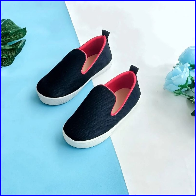 Sepatu Sekolah Anak Laki-laki Dan Perempuan Slip On Polos Hitam