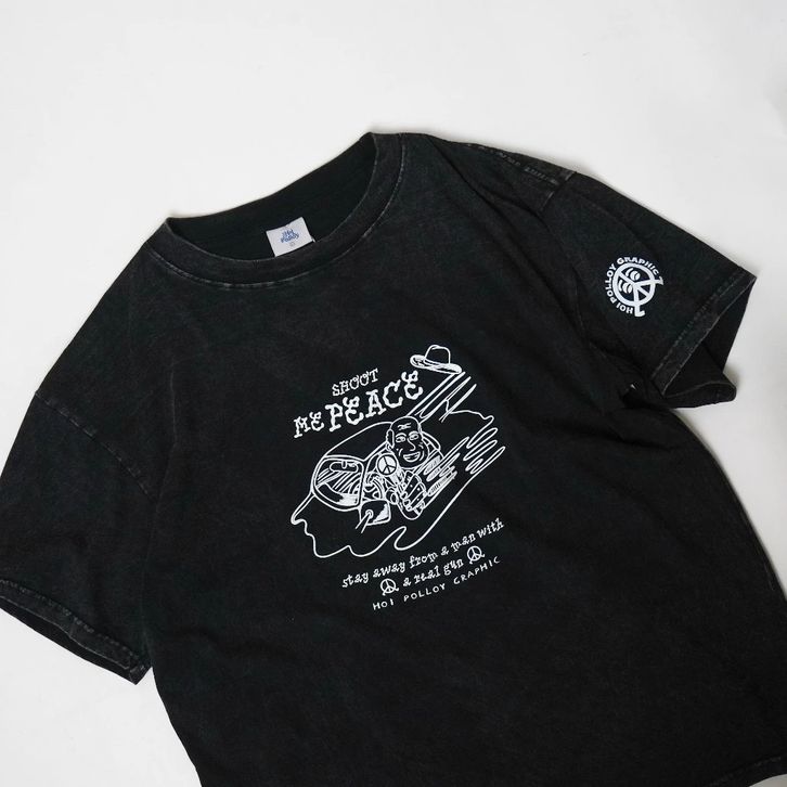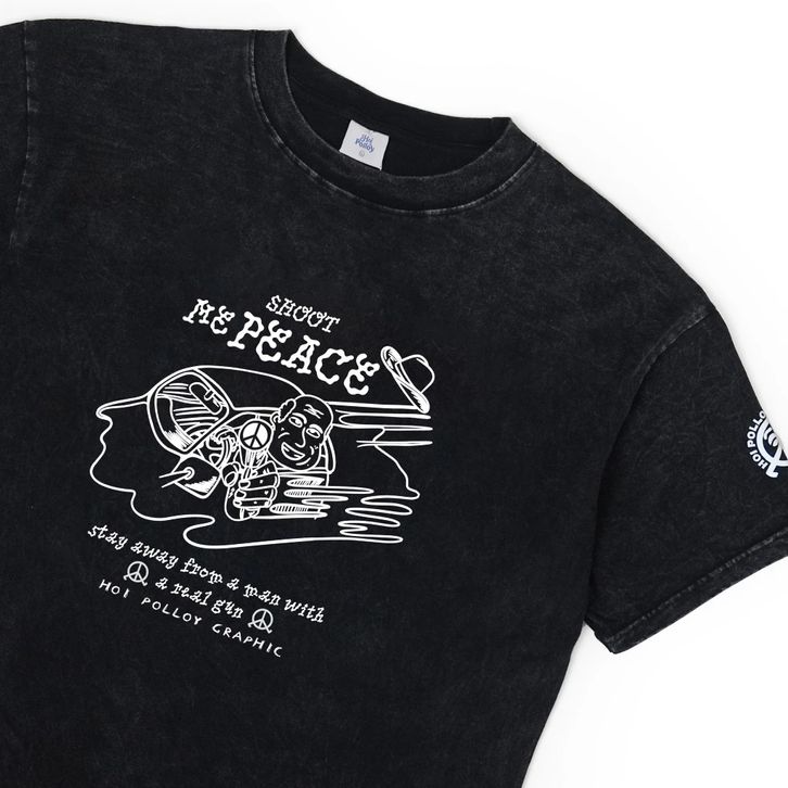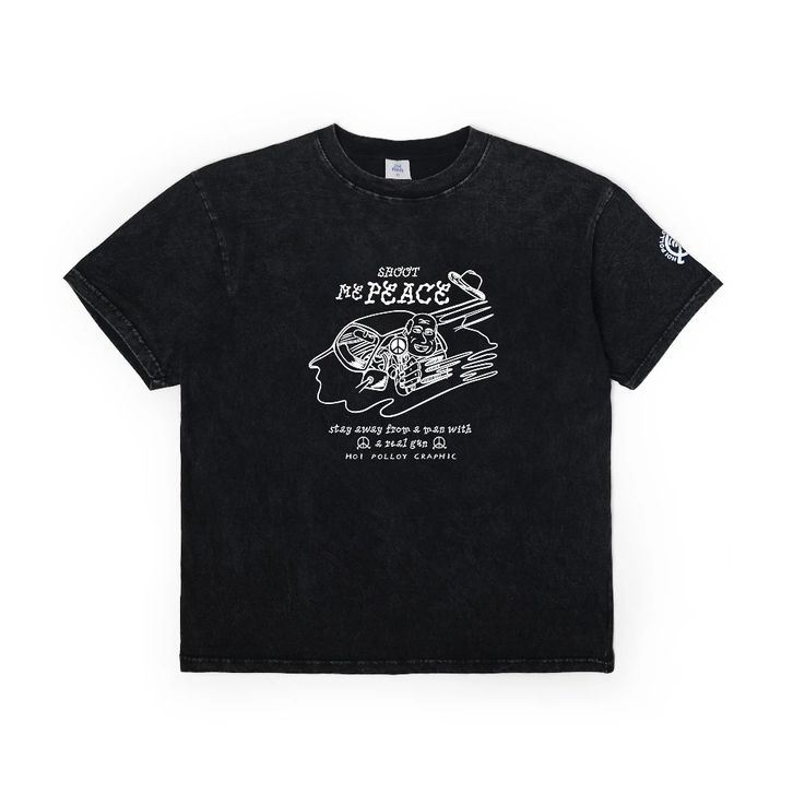 KAOS COWOK HOI POLLOY - T-SHIRT KAOS SHOOT ME PEACE (WASHED BLACK)