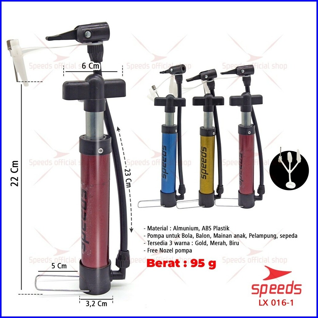 Speeds Pompa Angin Manual Plus Jarum Untuk Bola Basket Sepak Futsal Volly Pump Ball 016-1