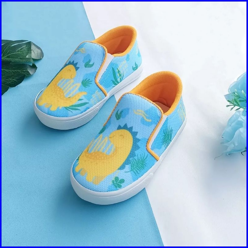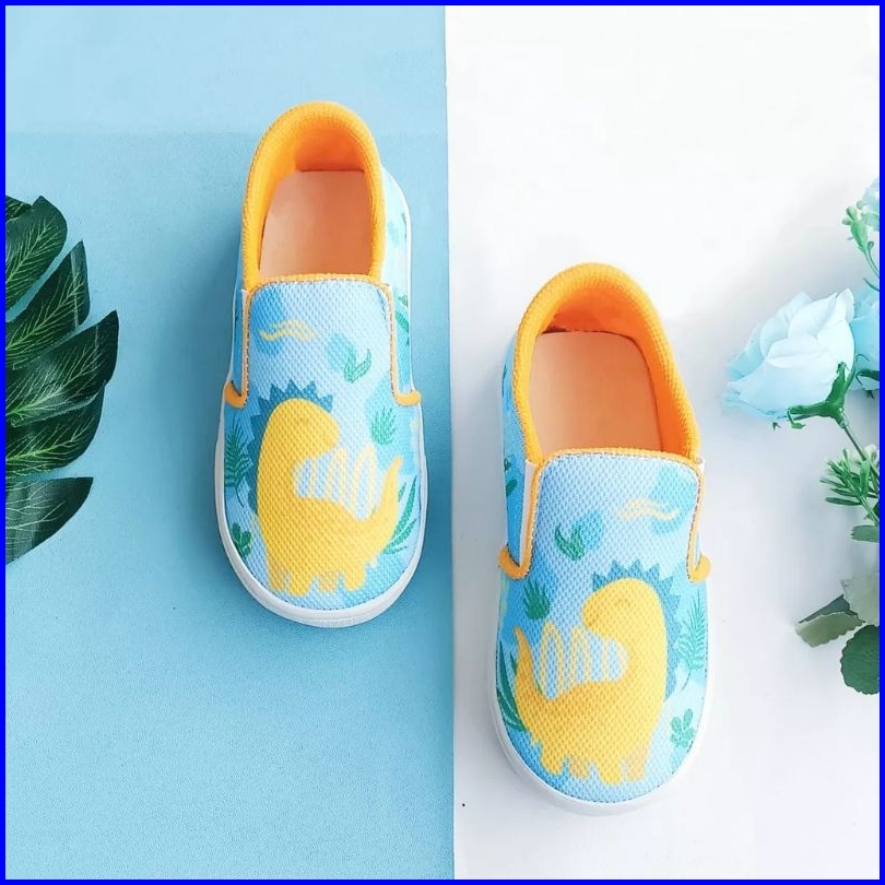 Zonalokidswear Dino Kuning - Sepatu Anak Slip On Anak Perempuan Laki Laki Usia 1 - 9 Tahun