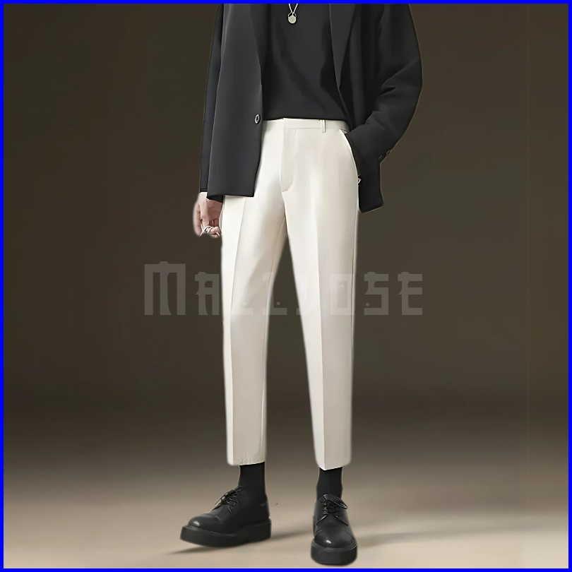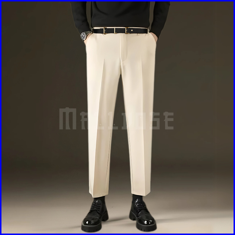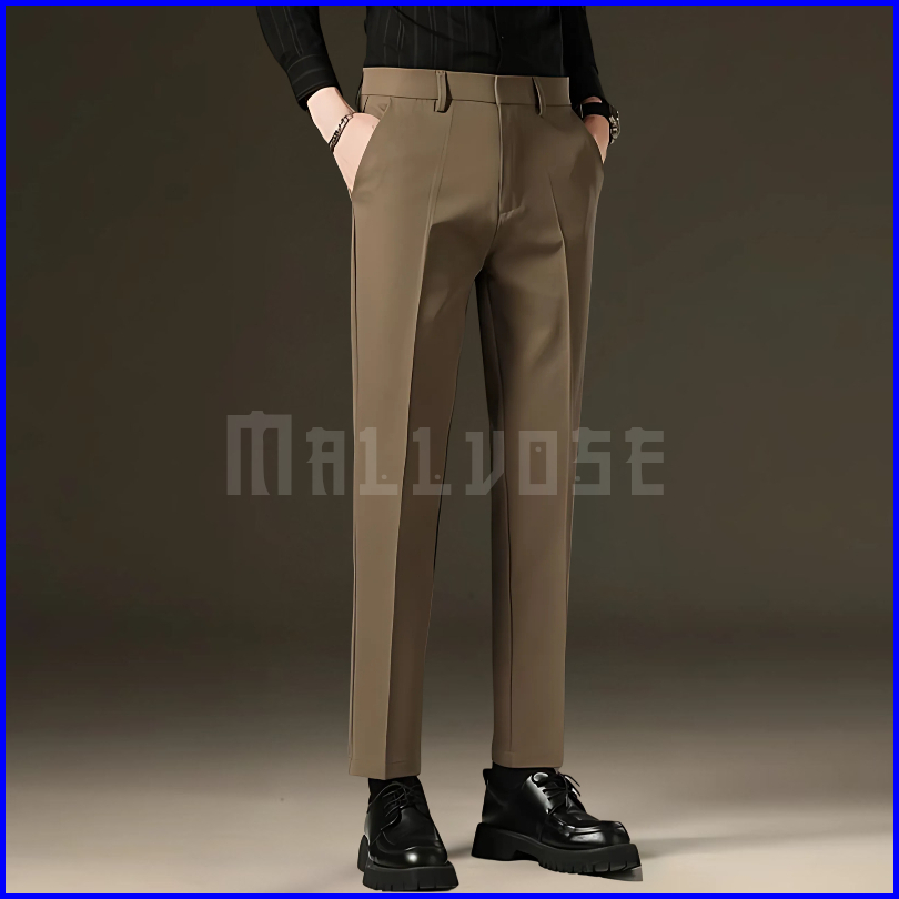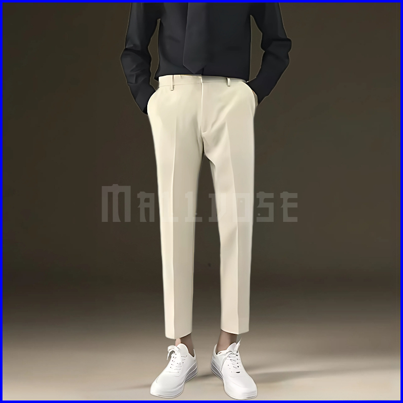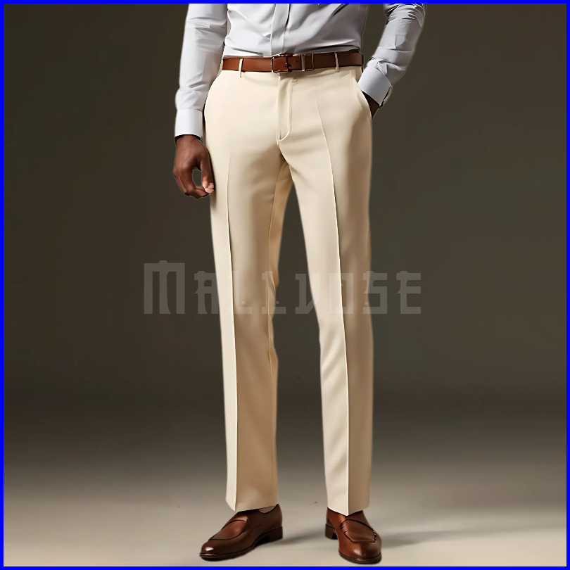 Mallvose - Celana Pria Formal Bahan High Quality Krem Slimfit
