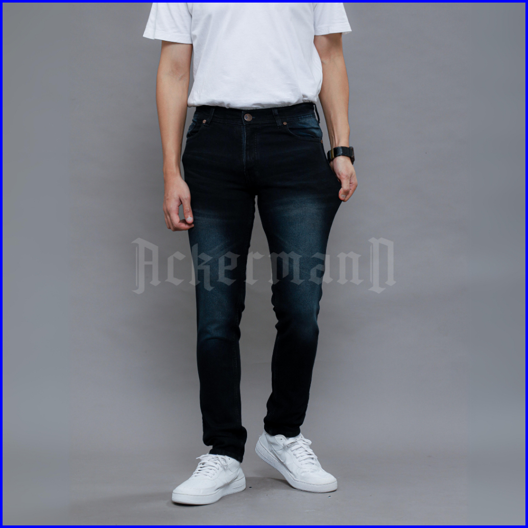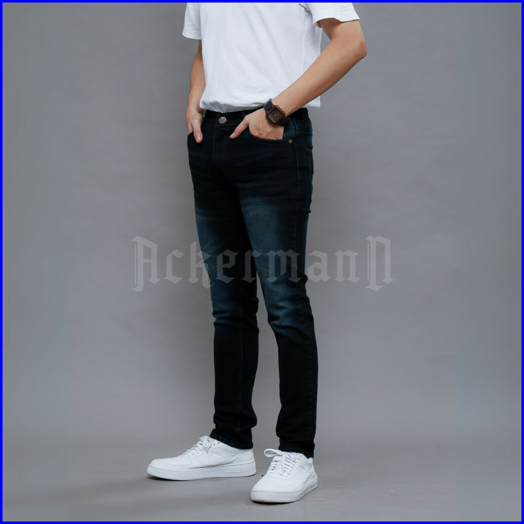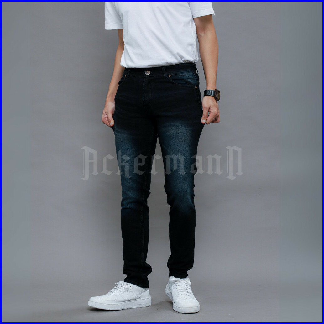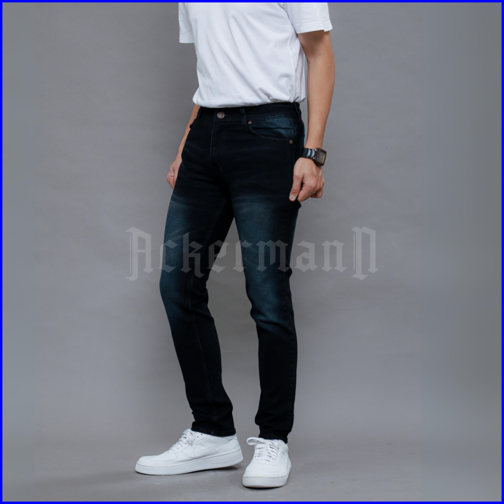 Ackermann By Mallvose - Celana Jeans Panjang Motif Slimfit Black Metal Premium