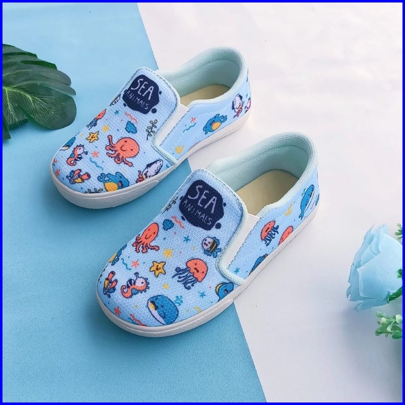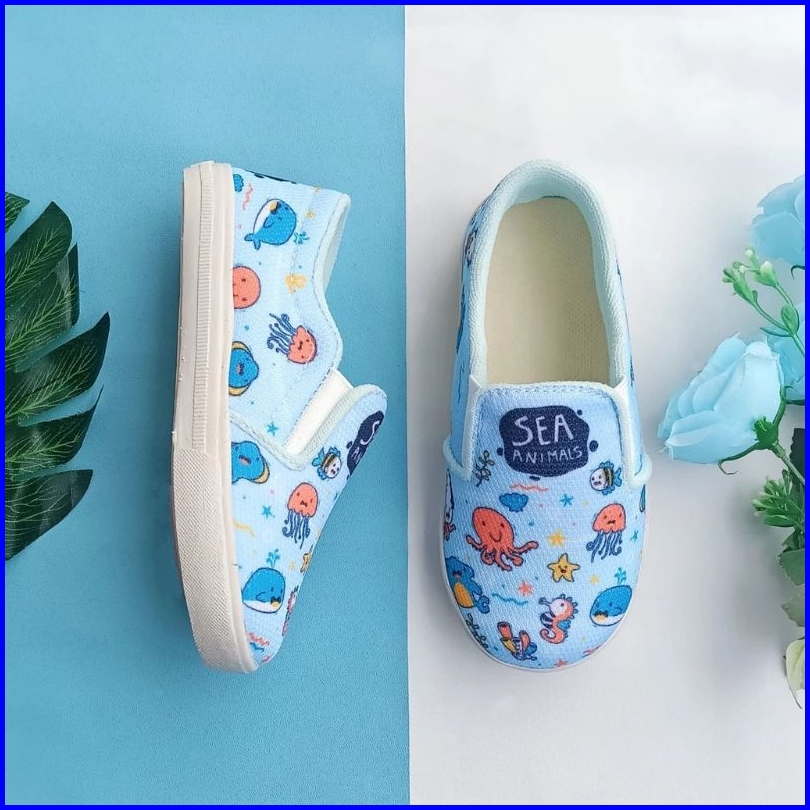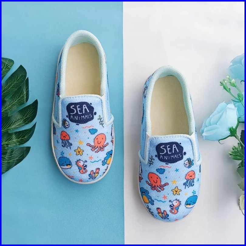Sepatu Slip On Anak Perempuan Dan Laki-laki Motif Sea Animals Biru