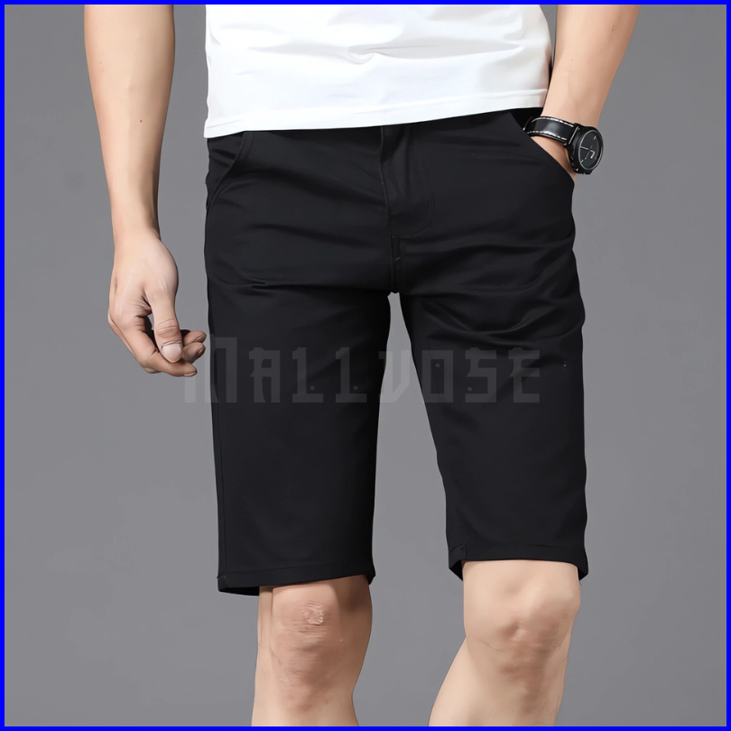 Mallvose - Celana Pria Pendek Chino Black Premium