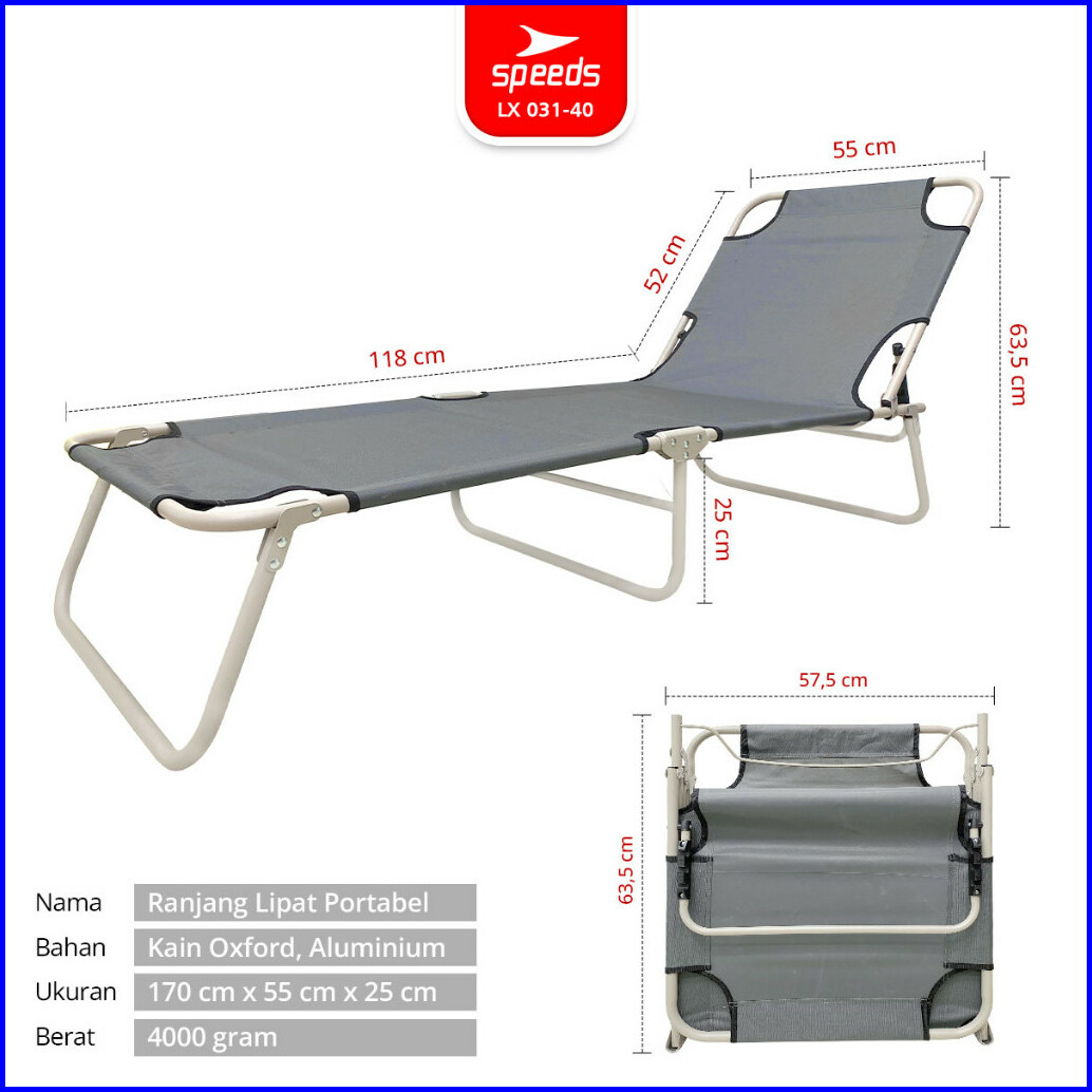Speeds Ranjang Lipat Portabel Bersantai Velbed Tempat Tidur Aluminium Lipat Berkemah Outdoor Indoor 031-40