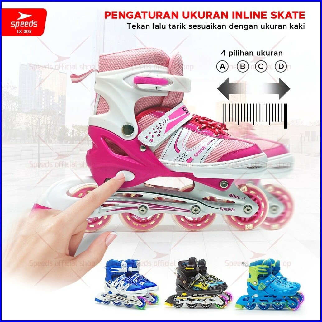 Speeds Sepatu Roda Anak Dan Dewasa Inline Skate Full Karet Pu Roda Nyala 1 Warna Random 003-222