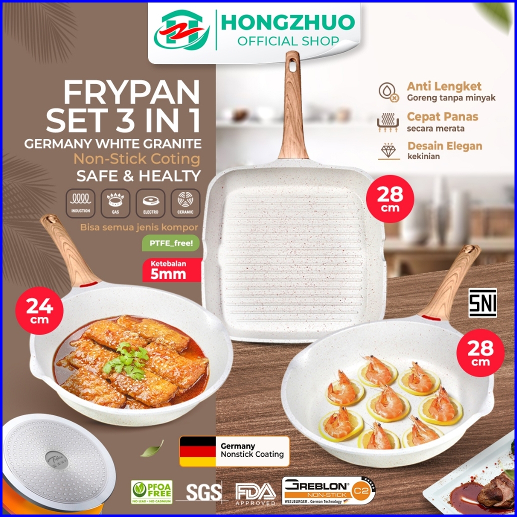 Tifale By Hongzhuo Granit Putih Anti Lengket Peralatan Masak Dapur Untuk Semua Kompor Panci Wajan Penggorengan Grillpan