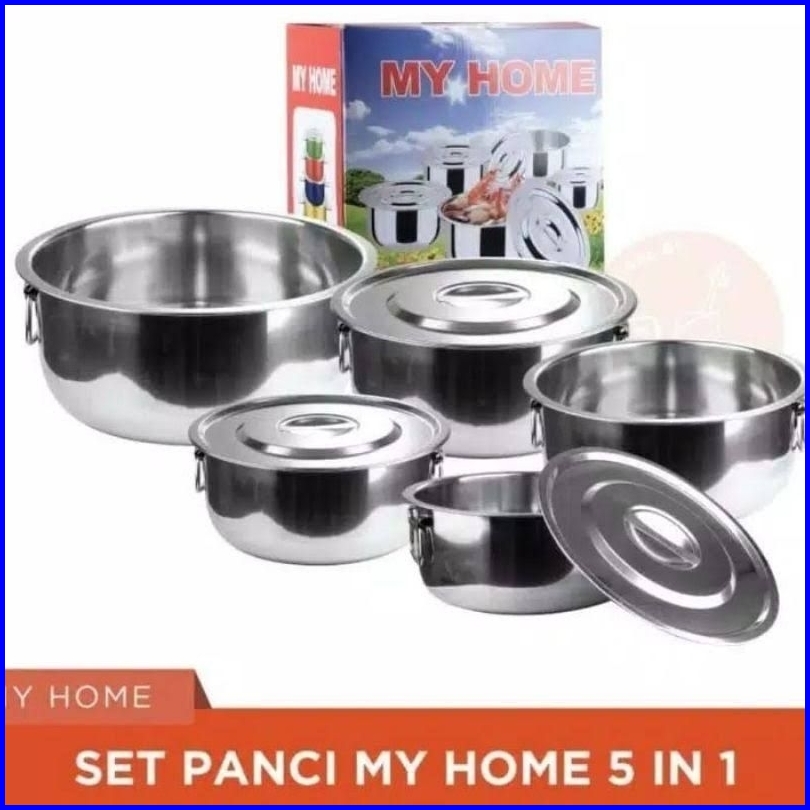 Panci Stainlees Beranak 5in1 Tutup My Home Stainlees Steel Beranak 5 Susun My Home Alat Masak Pancii