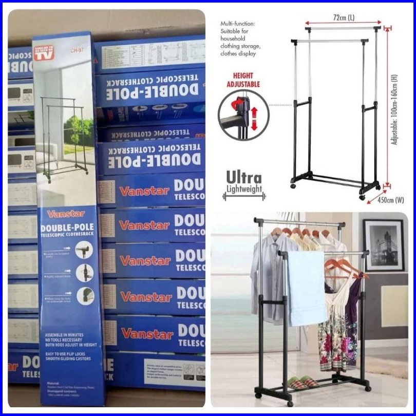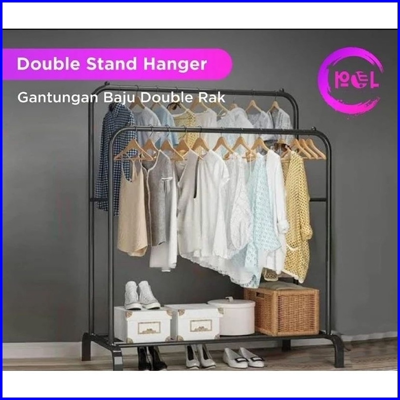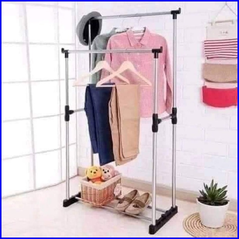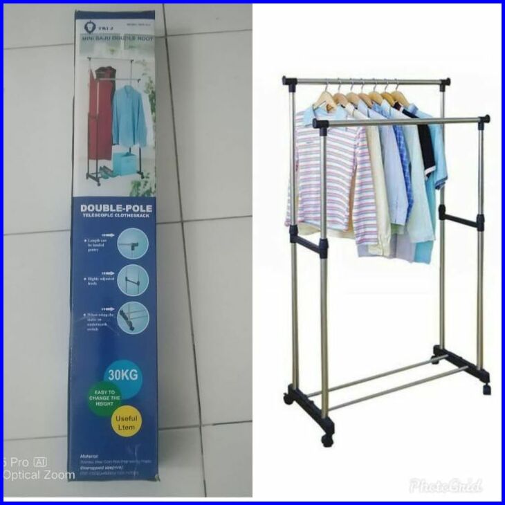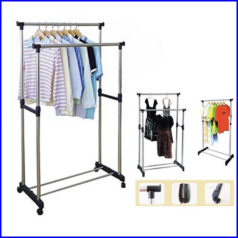 Jr-05 Jemuran Baju Double Pool Rak Besi Stainlees Jemuran Pakaian Stand Hanger Besi Stainleess