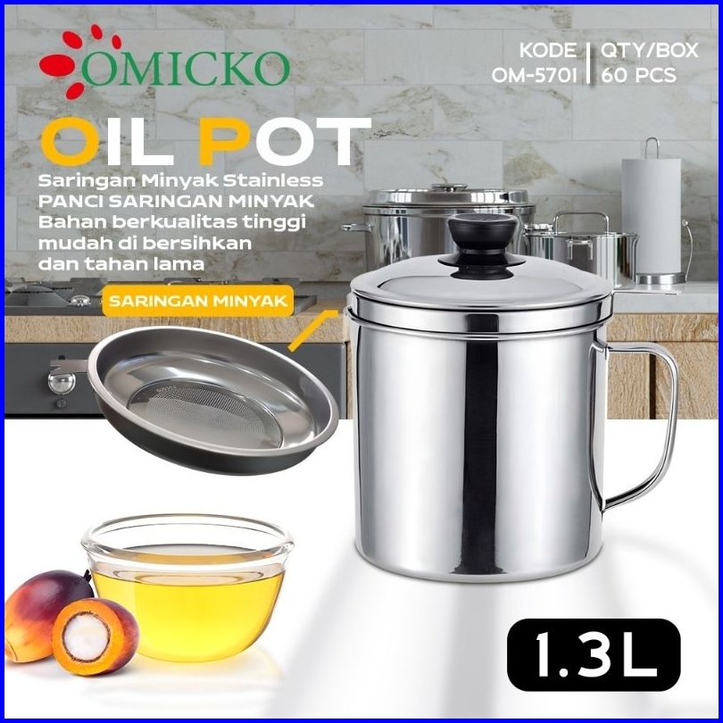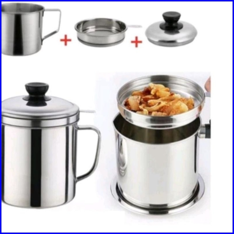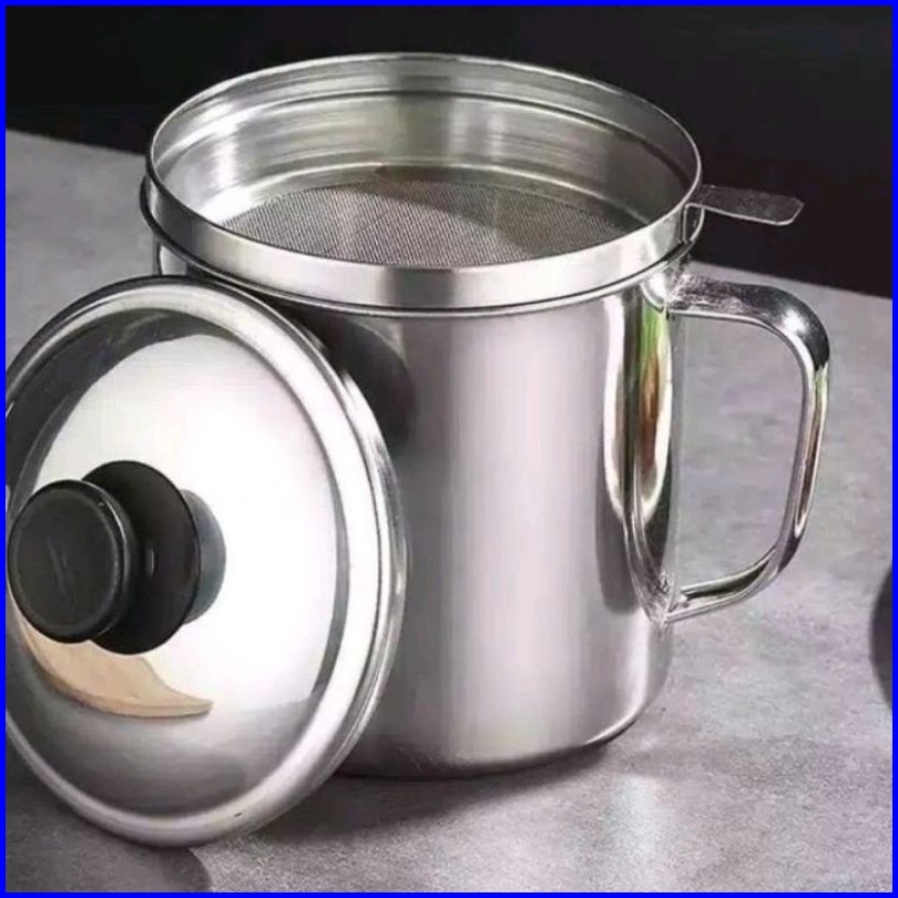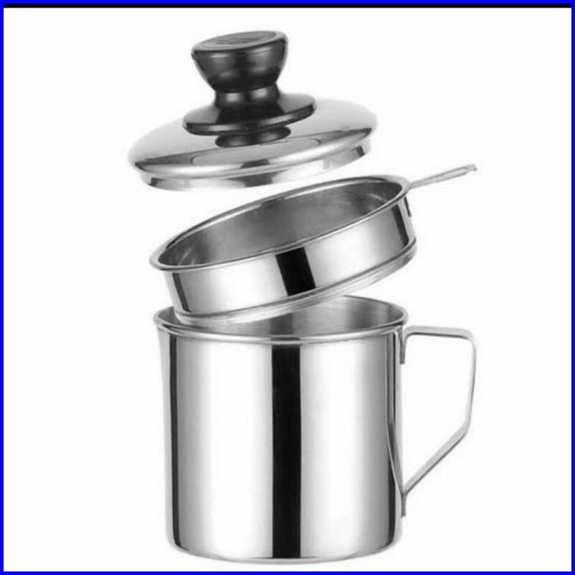Oil Pot Saringan Minyak Wadah 1 3liter Stainlees Steel Mug Saringan Minyak Warna Stainless Steel Penyaring Jelantah Set