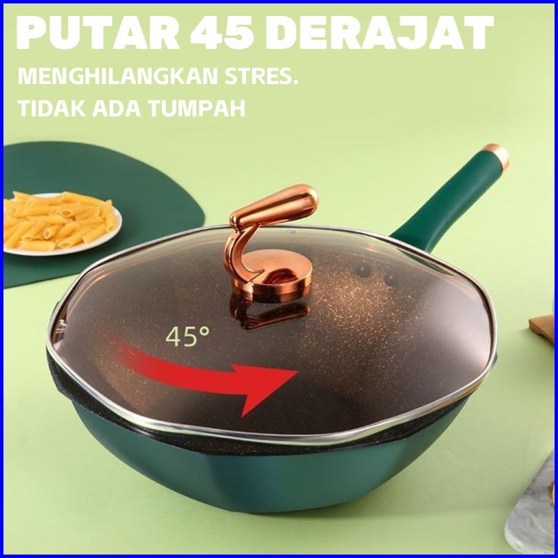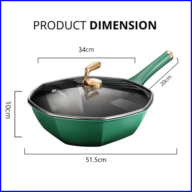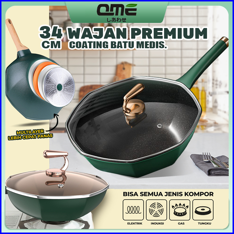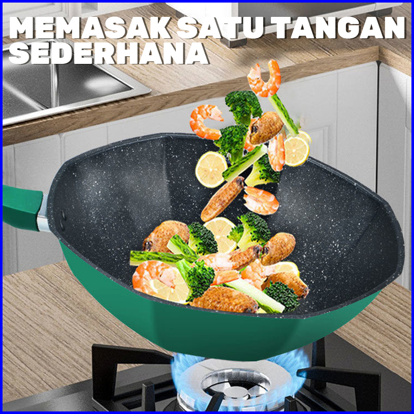 Qme Wajan Penggorengan Premium Persegi Delapan Maifan Stone 32 Cm Anti Lengket Double Bottom Frypan