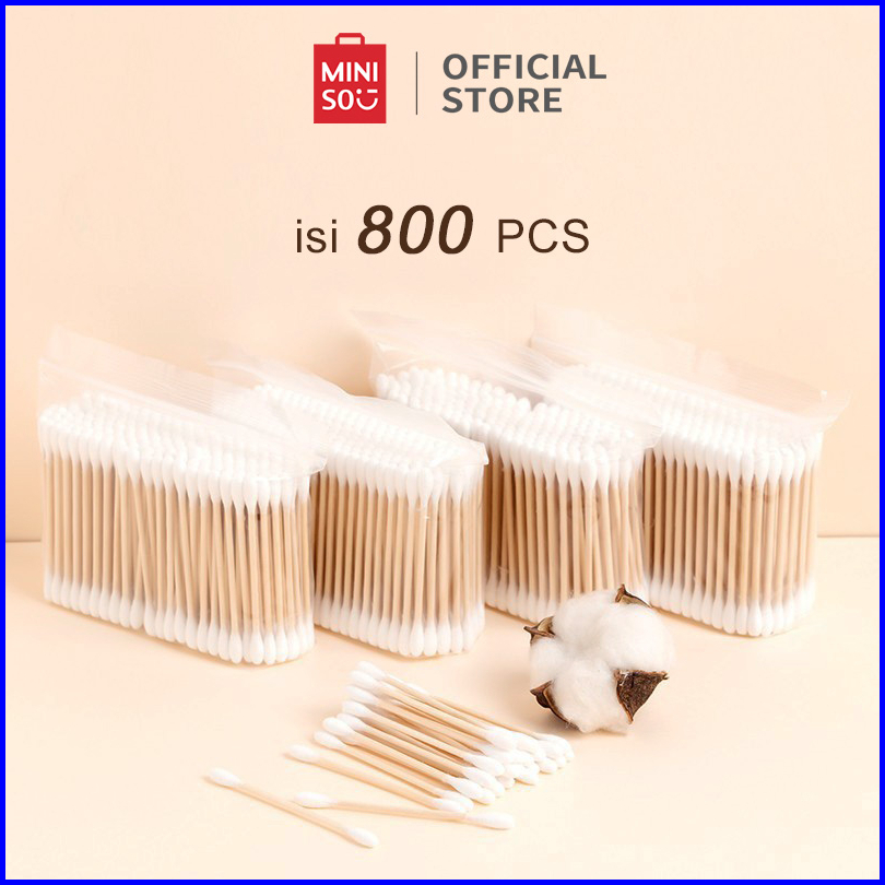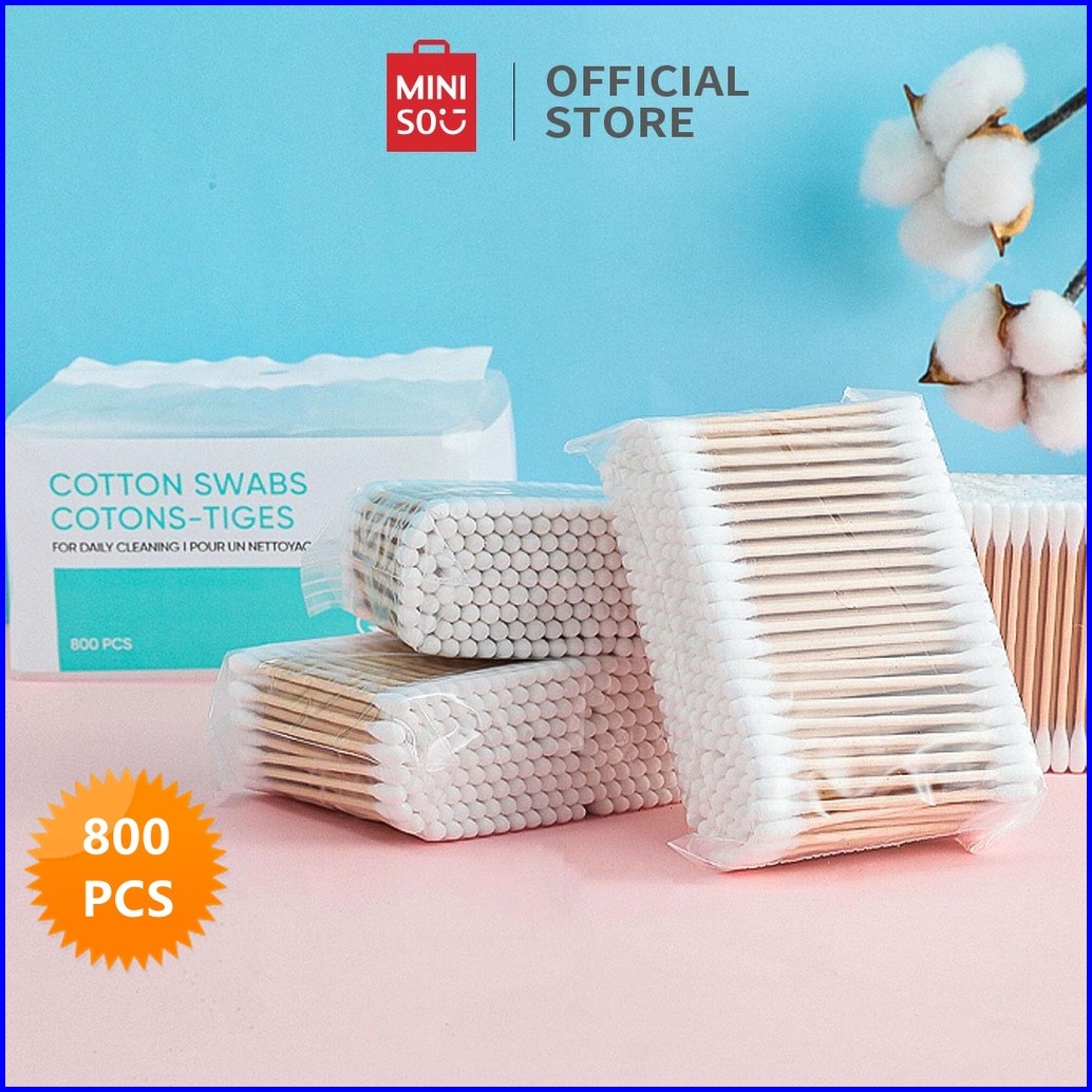 Miniso Cotton Bud 800pcs Cotton Swab Katun Swabs Kapas Korek Kuping Penyeka Kayu Tongkat Wooden Stick Double Head Portab