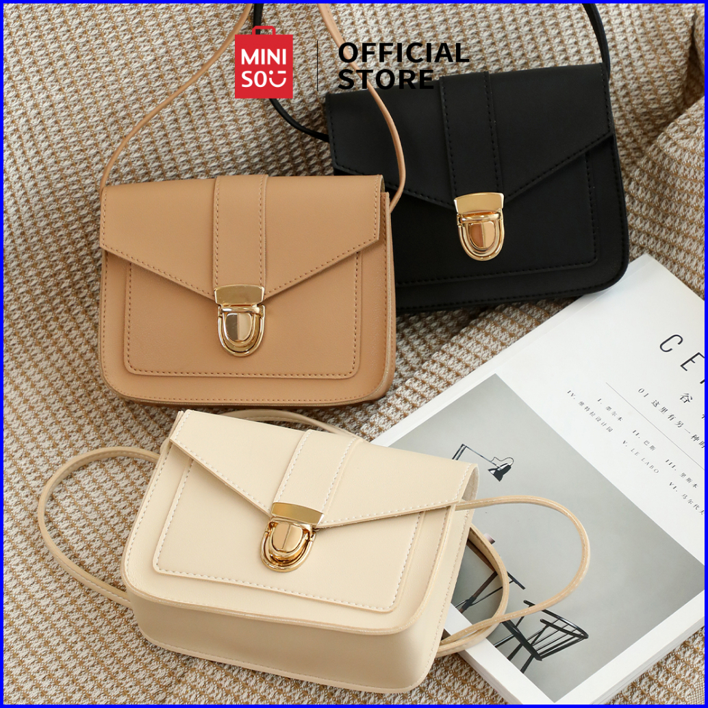Miniso Crossbody Bag Tas Selempang Kulit Kerang Mode Kunci Logam Antik Tahan Aus Kapasitas Tinggi