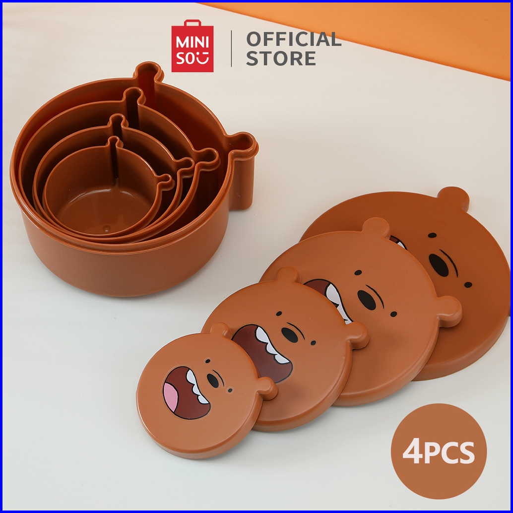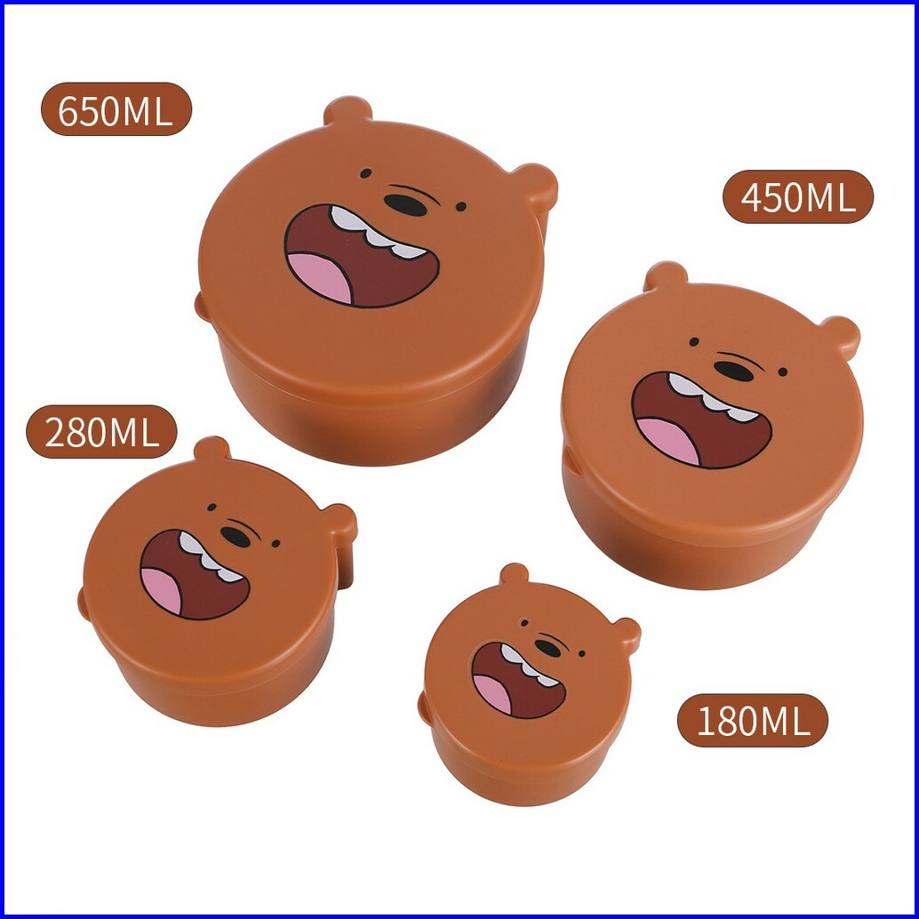 Miniso Kotak Makan Tempat We Bare Bears Lucu Penyimpanan Makanan 4 Pcs Set Dapur Kulkas Food Storage