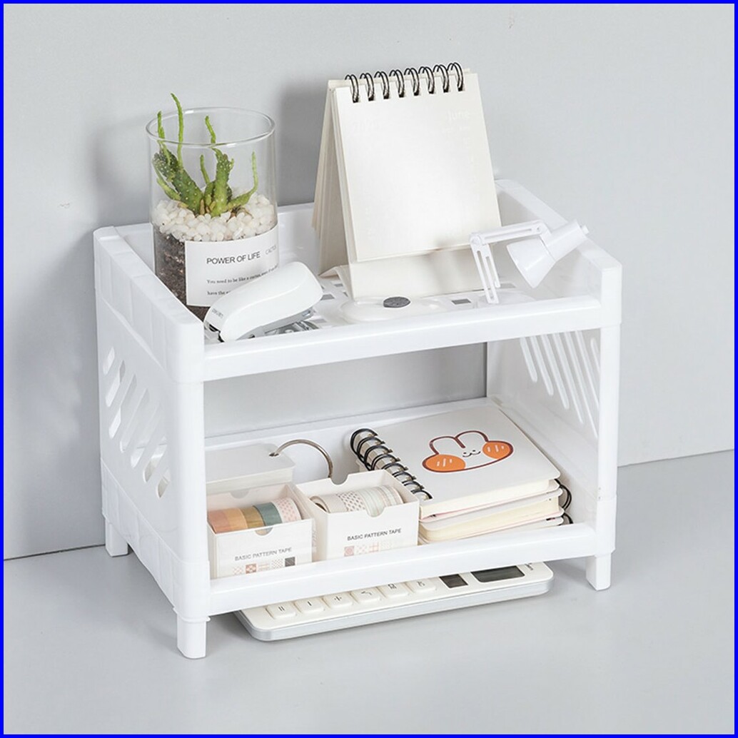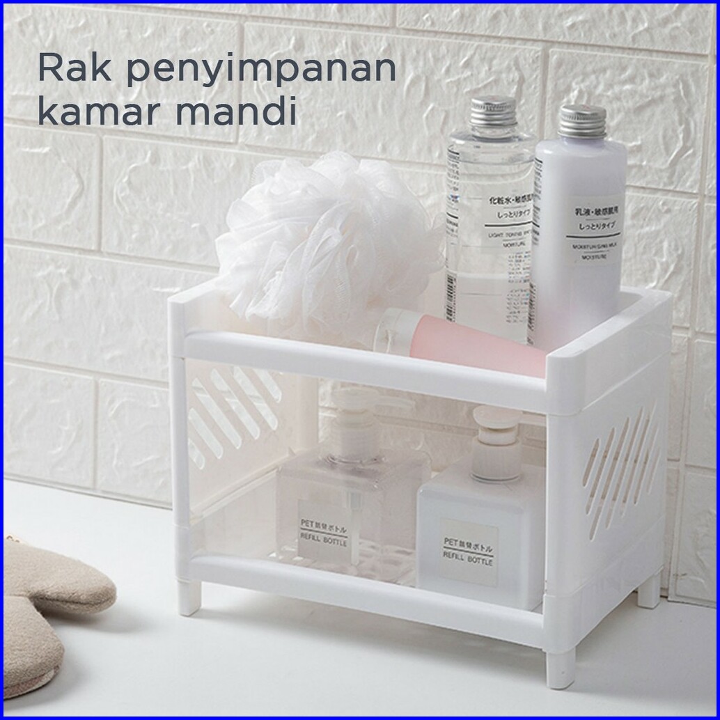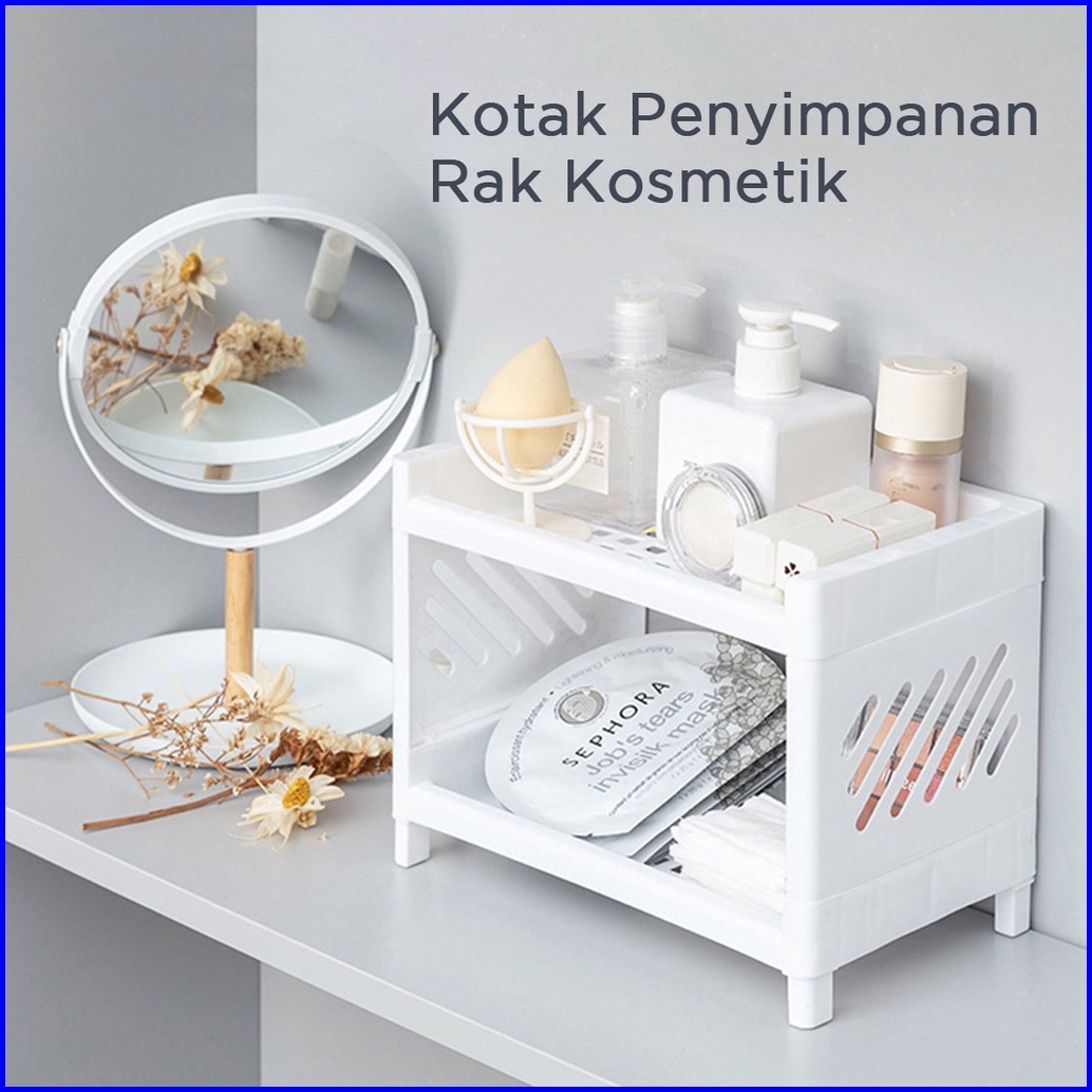 Miniso Rak Kosmetik Multifungsi 2 Lapis Kotak Penyimpanan Serbaguna Plastik Rack Dapur Tempat Kosmetik Organizer Meja Mi