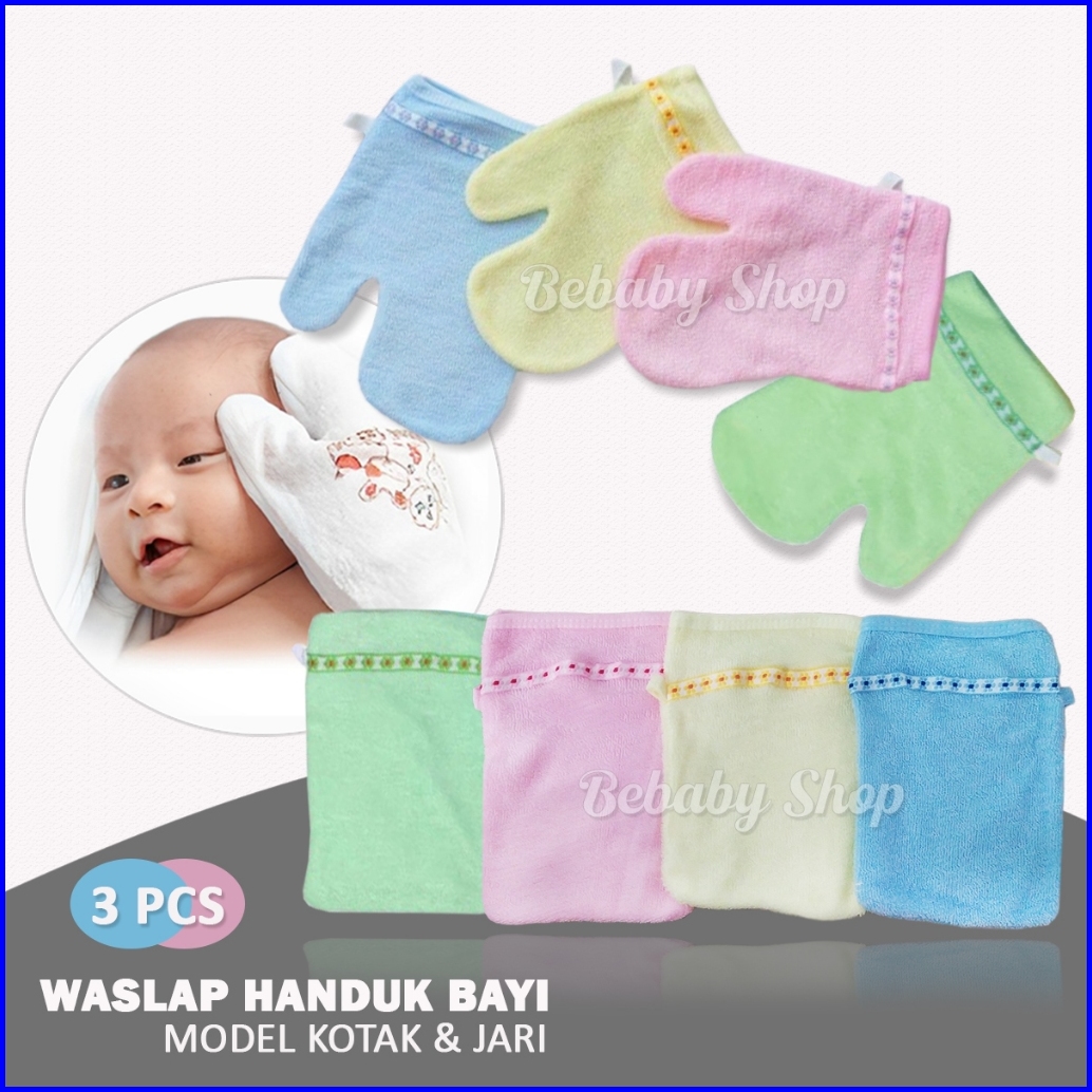 3pcs Waslap Mandi Bayi Murah Waslap Jari Kotak Kain Handuk Halus Warna Warni