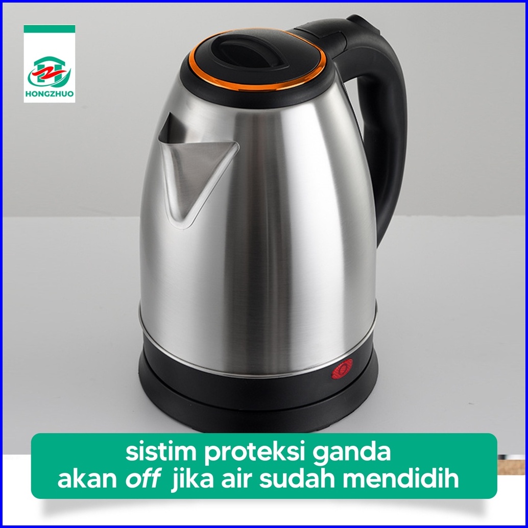 Hongzhuo Teko Listrik 2 Liter Full Stainless Steel Pemanas Air Electric Kettle Ketel Besar Otomatis 500 Watt