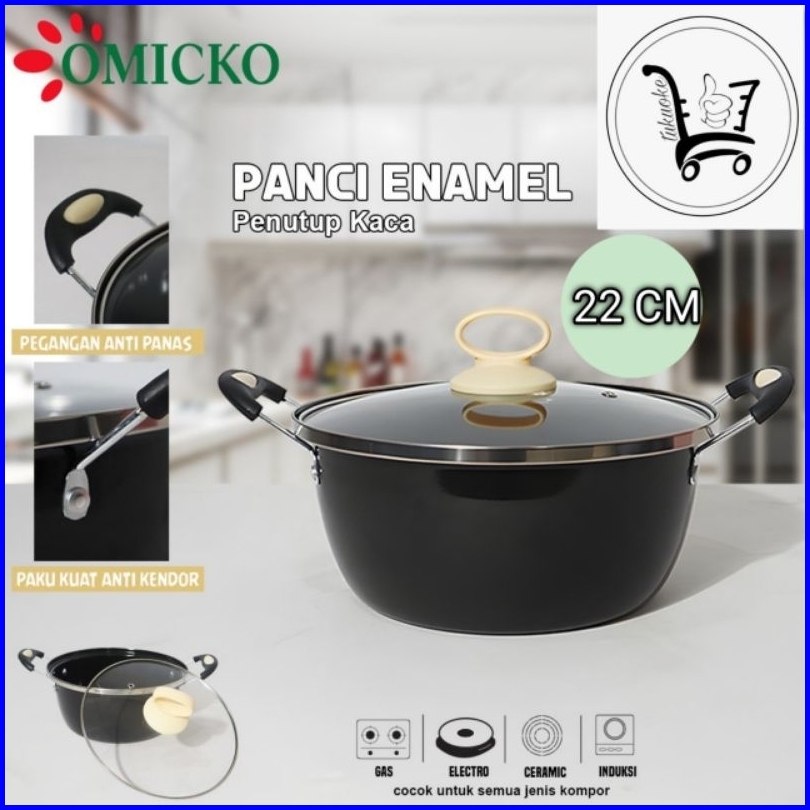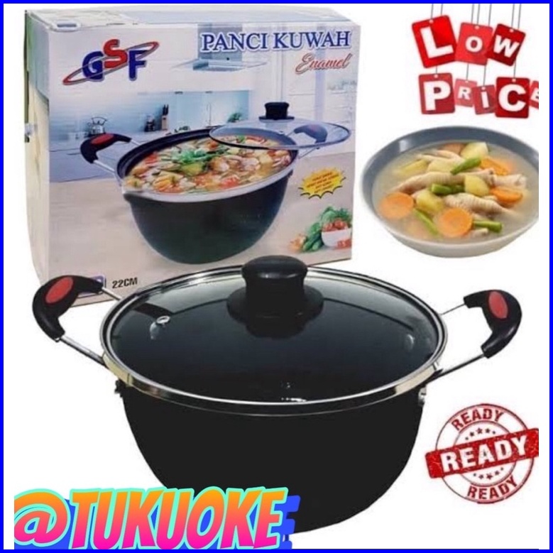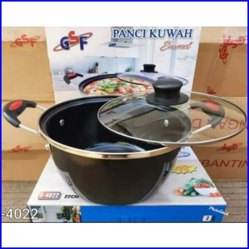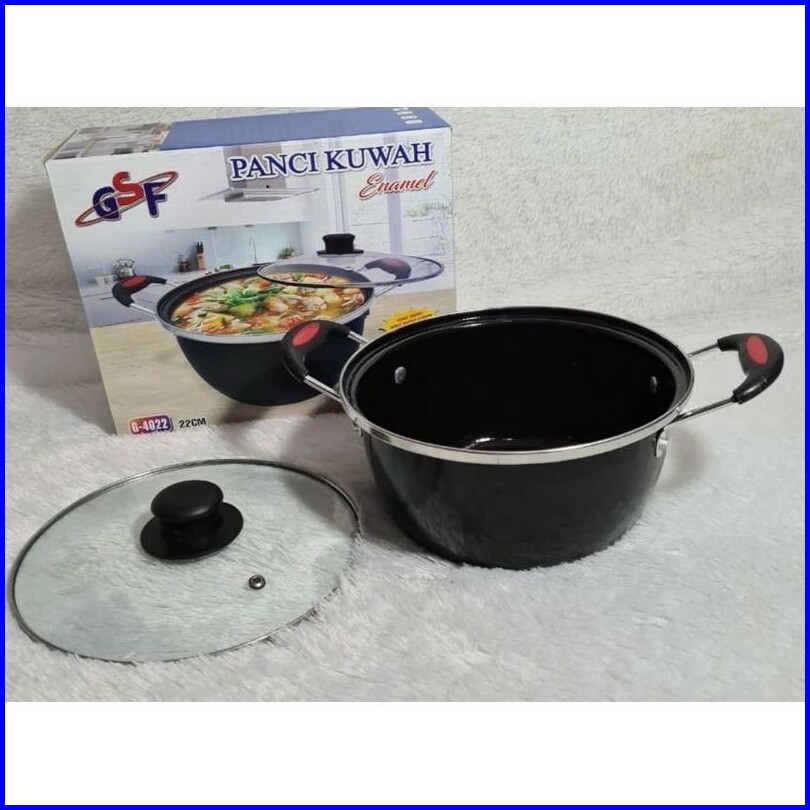 Panci Kuah Sayur Gsf Wajan Anti Lengket Kuah Enamel Serbaguna 22cm Tutup Kaca Kualitas Impor Murah