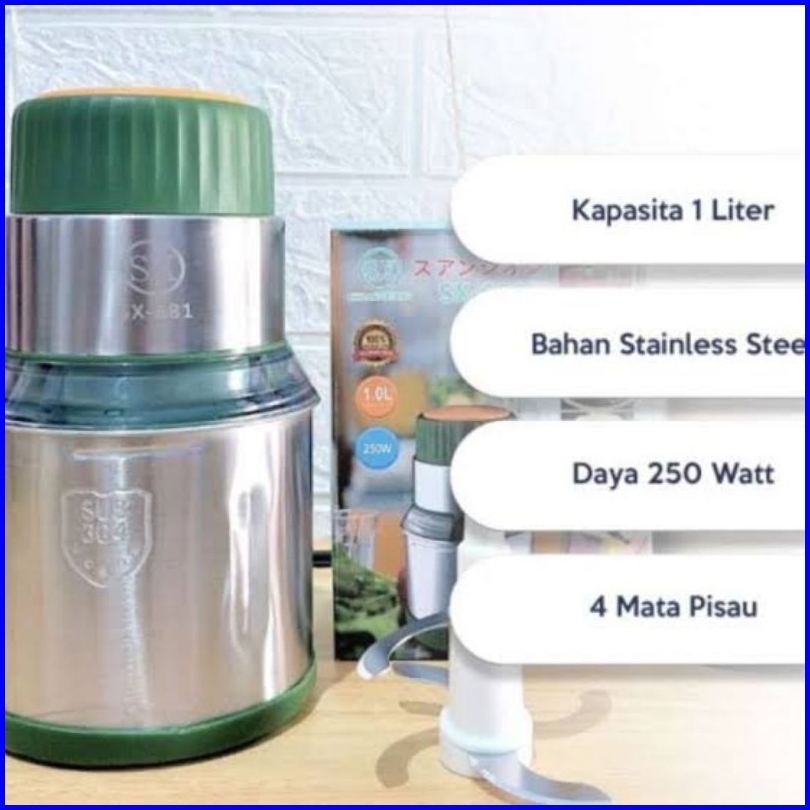 Blender Daging Chopper Stainlees 1liter 681 Chopper Serbaguna Stainless Steel Stenlis Bleander Logam